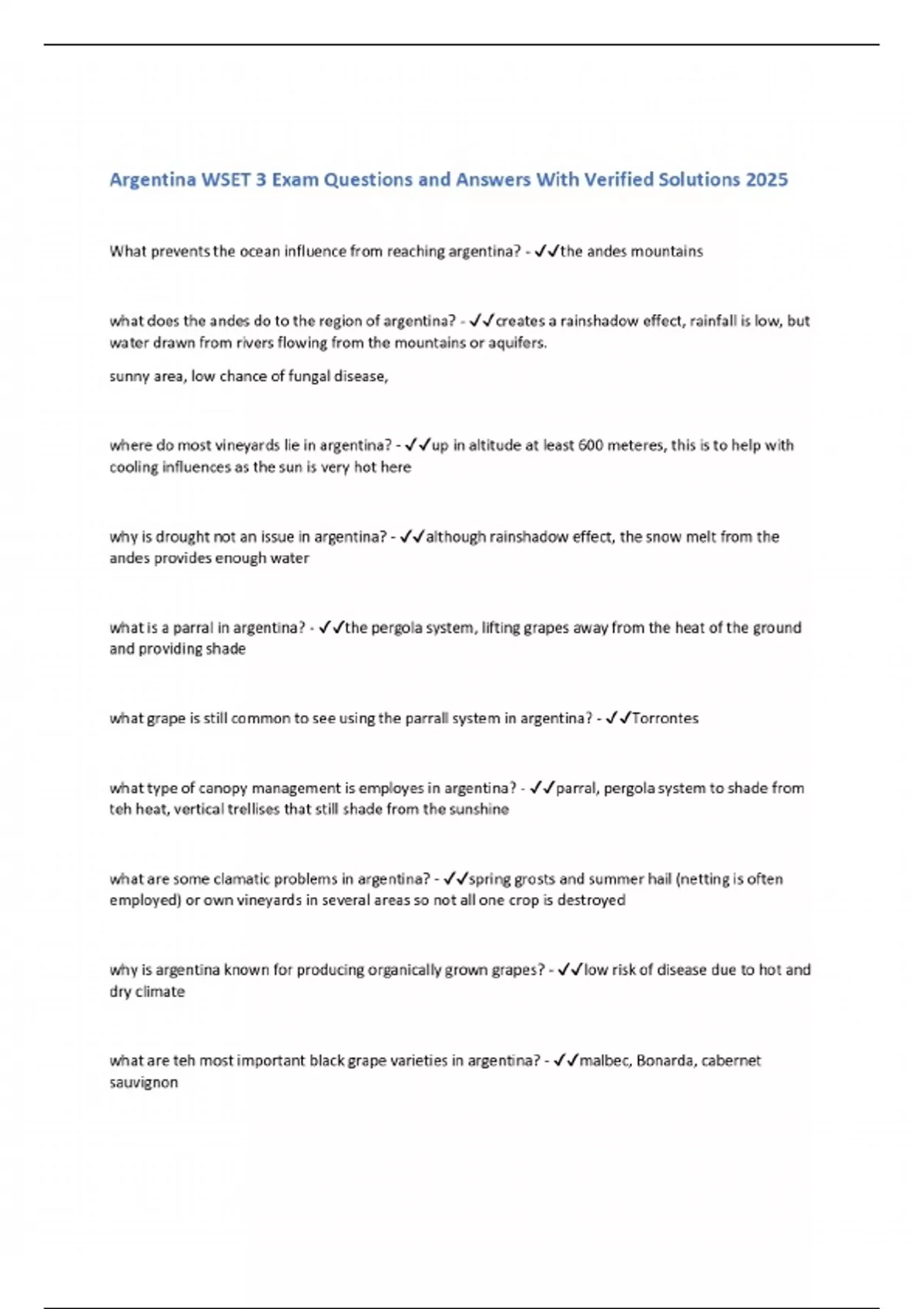 Argentina WSET 3 Exam Questions and Answers With Verified Solutions 2025