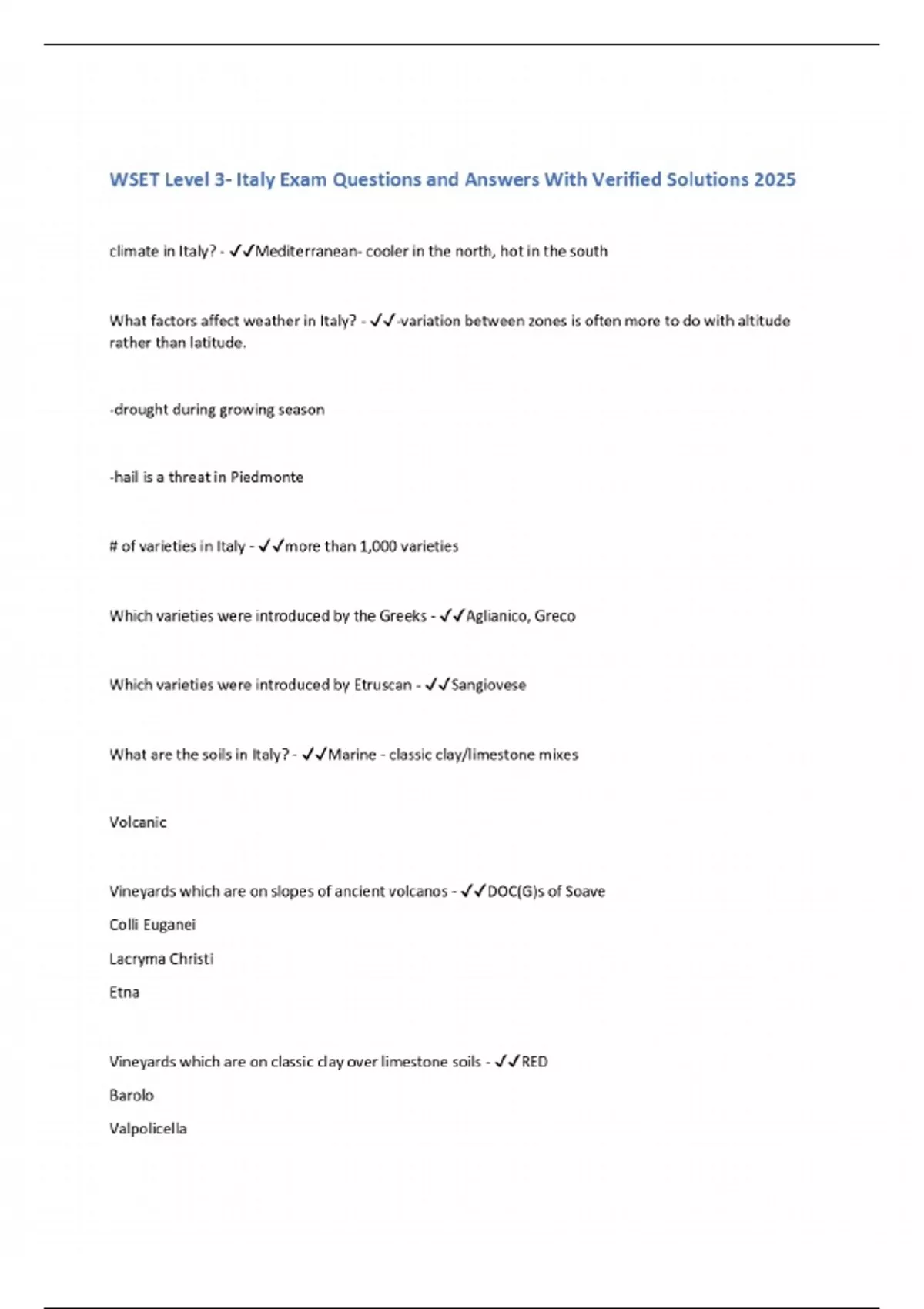 WSET Level 3- Italy Exam Questions and Answers With Verified Solutions 2025