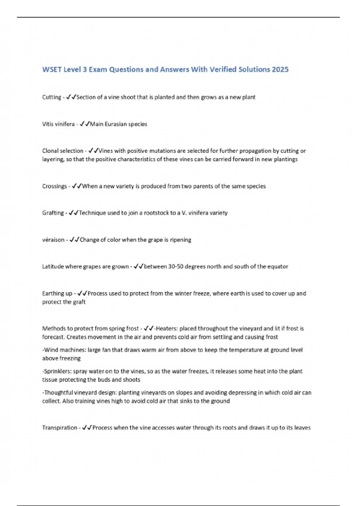 WSET Level 3 Exam Questions and Answers With Verified Solutions 2025