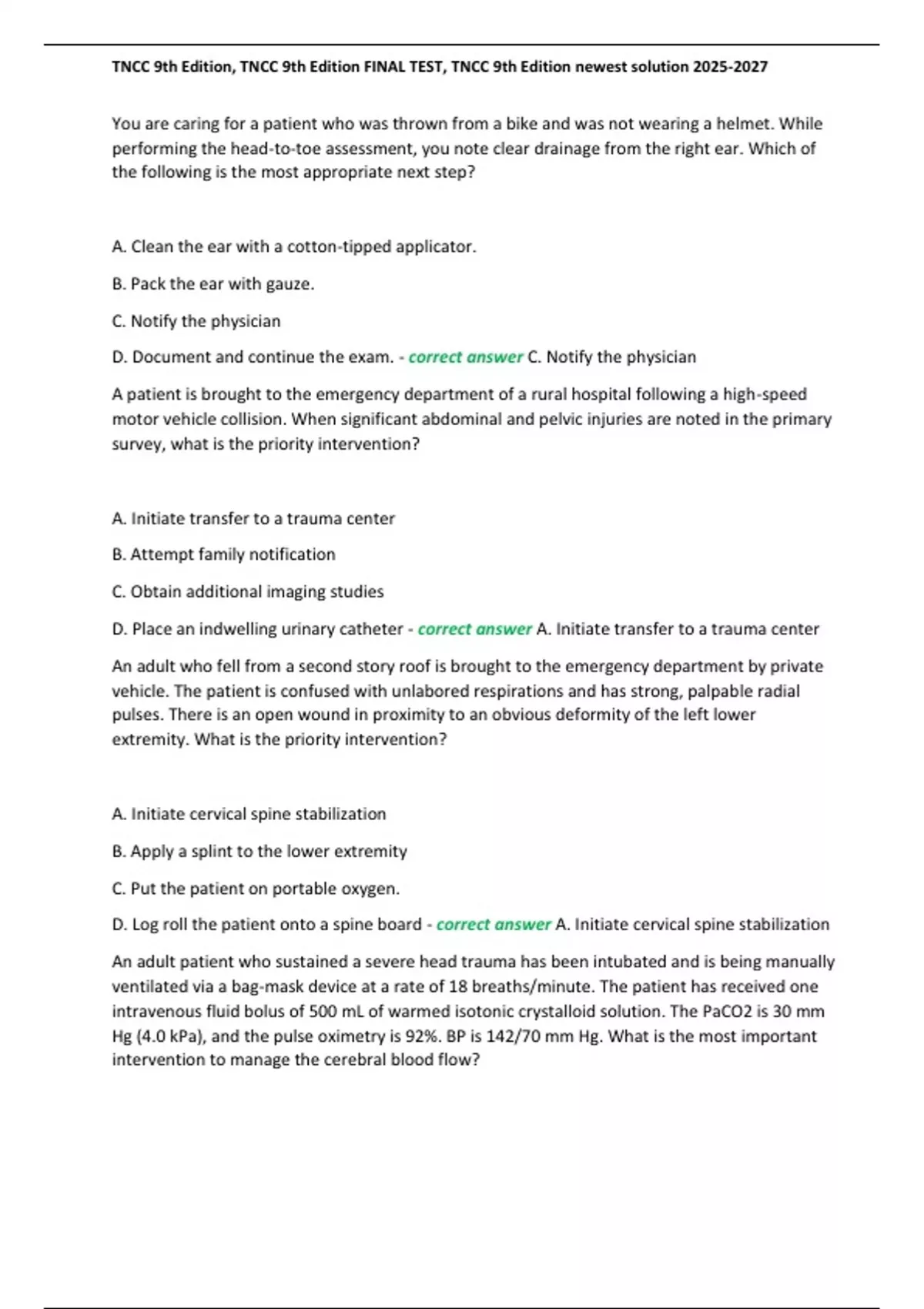,TNCC 9th Edition, TNCC 9th Edition FINAL TEST, TNCC 9th Edition newest solution 2025-2027