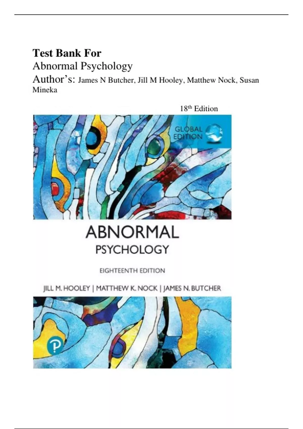 Test Bank For Abnormal Psychology 18th Edition by; James N Butcher, Jill M Hooley, Matthew Nock| All Chapters | Latest Edition 2025