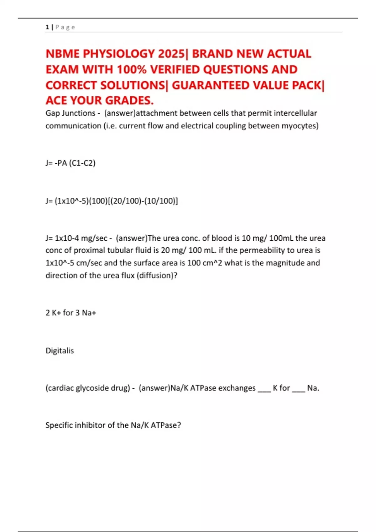 NBME PHYSIOLOGY 2025| BRAND NEW ACTUAL