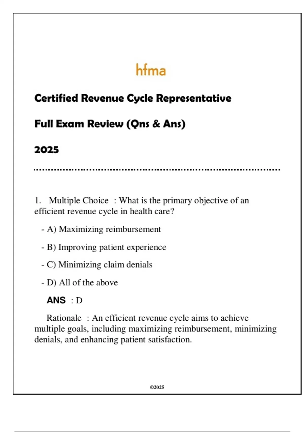 HFMA CRCR Full Exam Review (Qns & Ans) 2025.HFMA CRCR Full Exam Review (Qns & Ans) 2025.HFMA CRCR Full Exam Review (Qns & Ans) 2025.