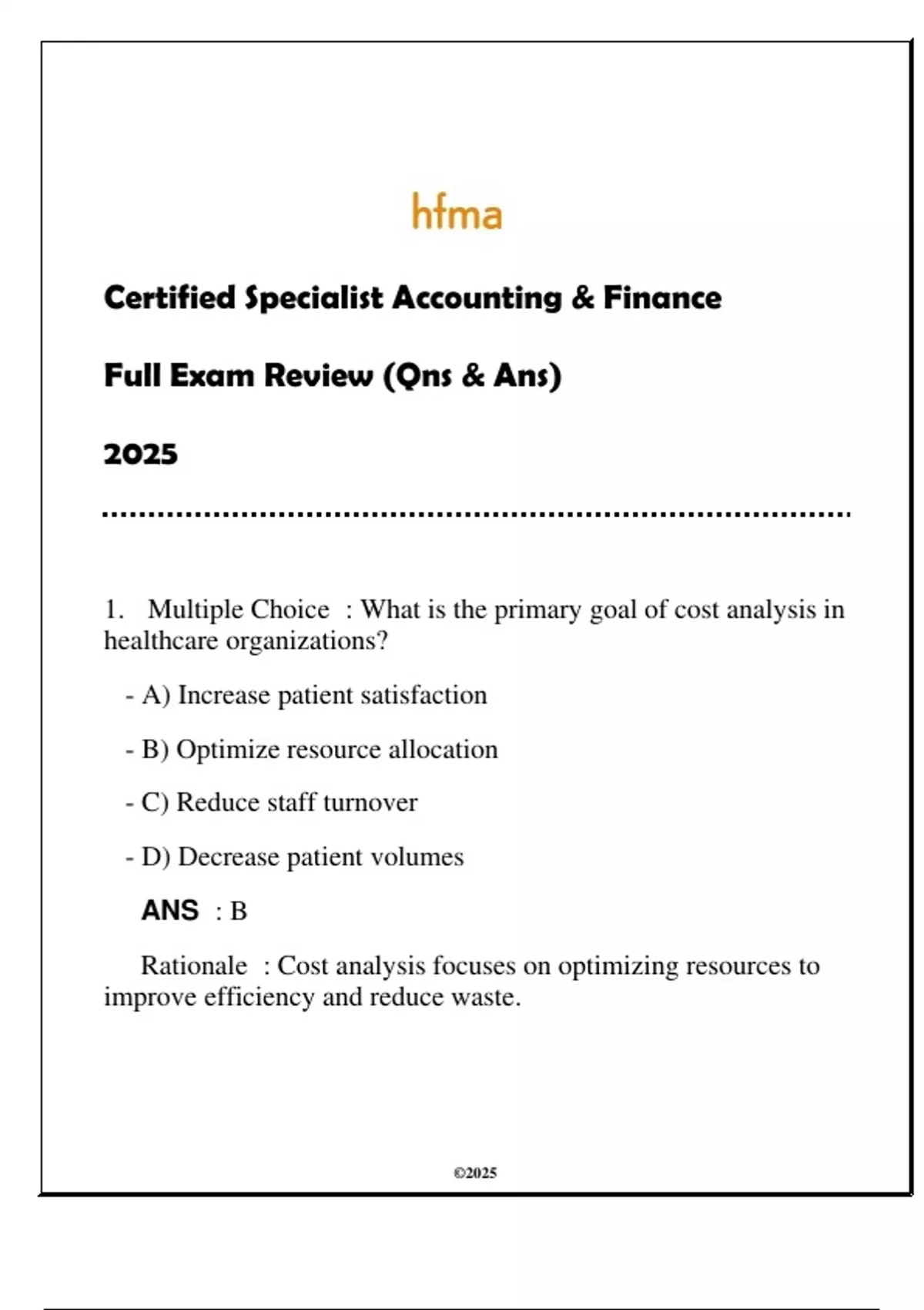Rationale : Cost analysis focuses on optimizing resources to