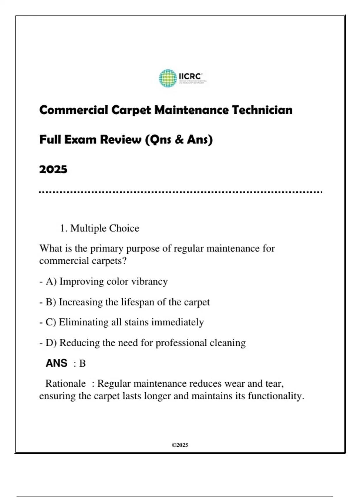 Rationale : Regular maintenance reduces wear and tear,