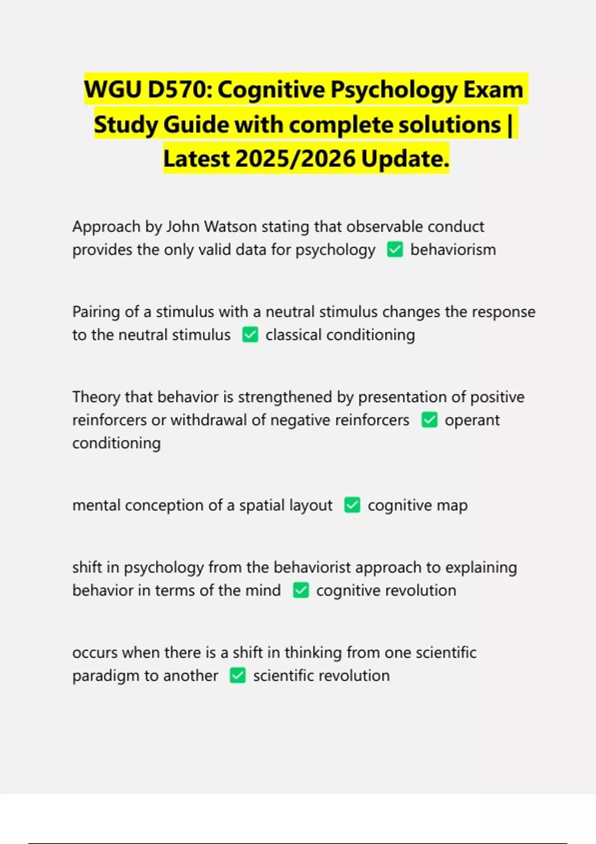 WGU D570: Cognitive Psychology Exam Study Guide with complete solutions | Latest 2025/2026 Update.