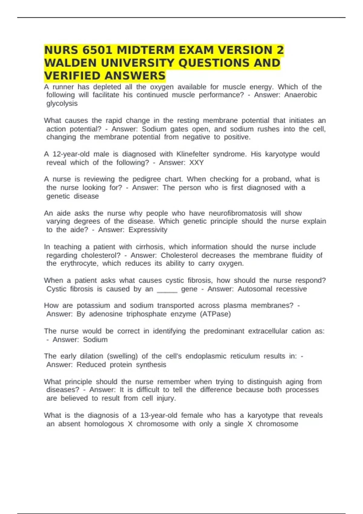 NURS 6501 Midterm Exam Version 2 Walden University Questions and Verified Answers