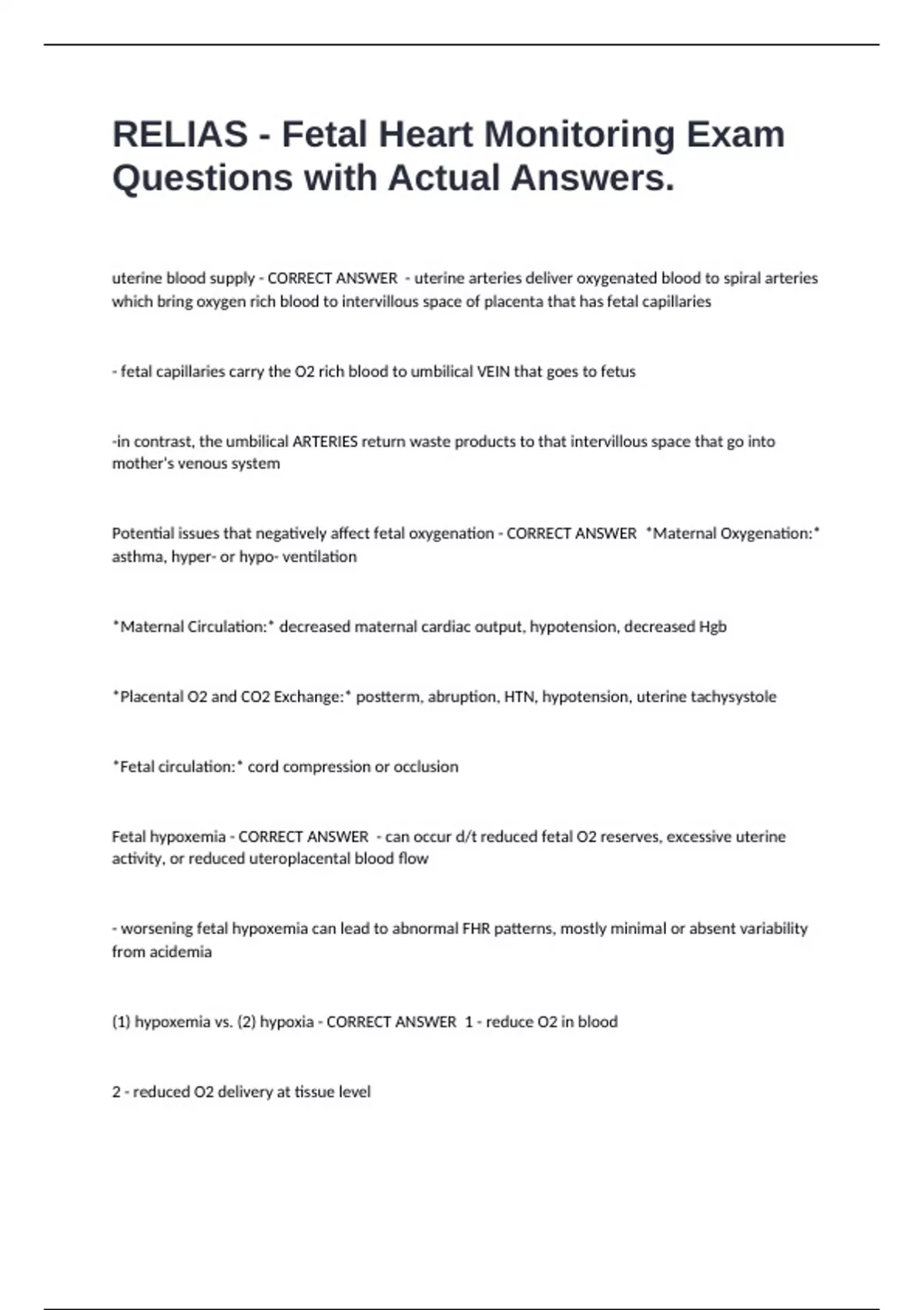 Potential issues that negatively affect fetal oxygenation - CORRECT ANSWER *Maternal Oxygenation:*
