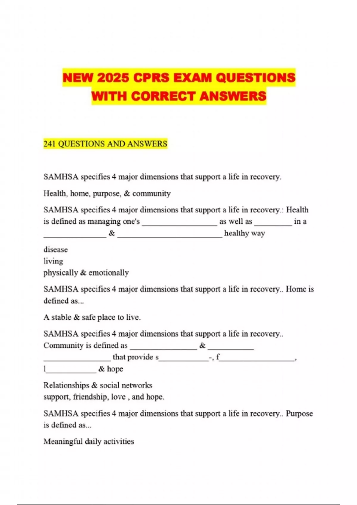 NEW 2025 CPRS EXAM QUESTIONS WITH CORRECT ANSWERS....