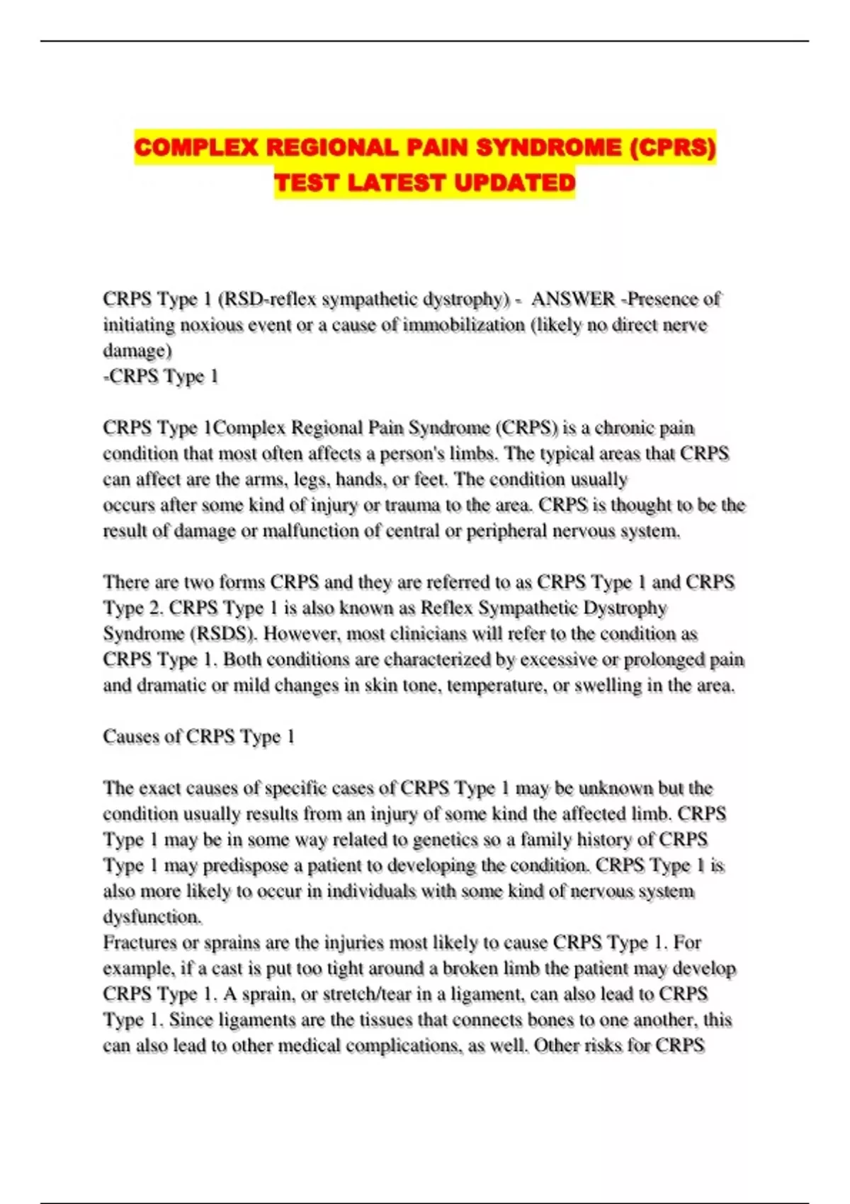 CRPS Type 1Complex Regional Pain Syndrome (CRPS) is a chronic pain