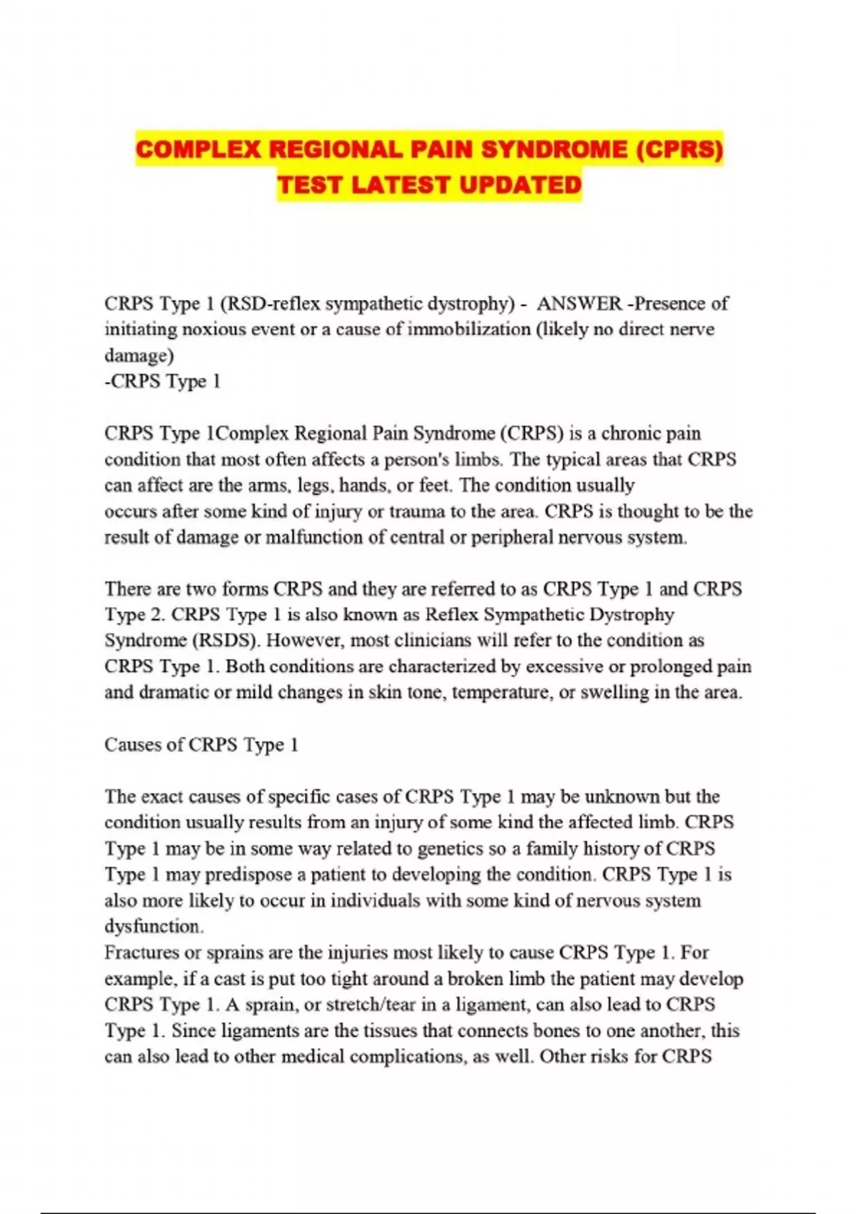 COMPLEX REGIONAL PAIN SYNDROME (CPRS) TEST LATEST UPDATED....