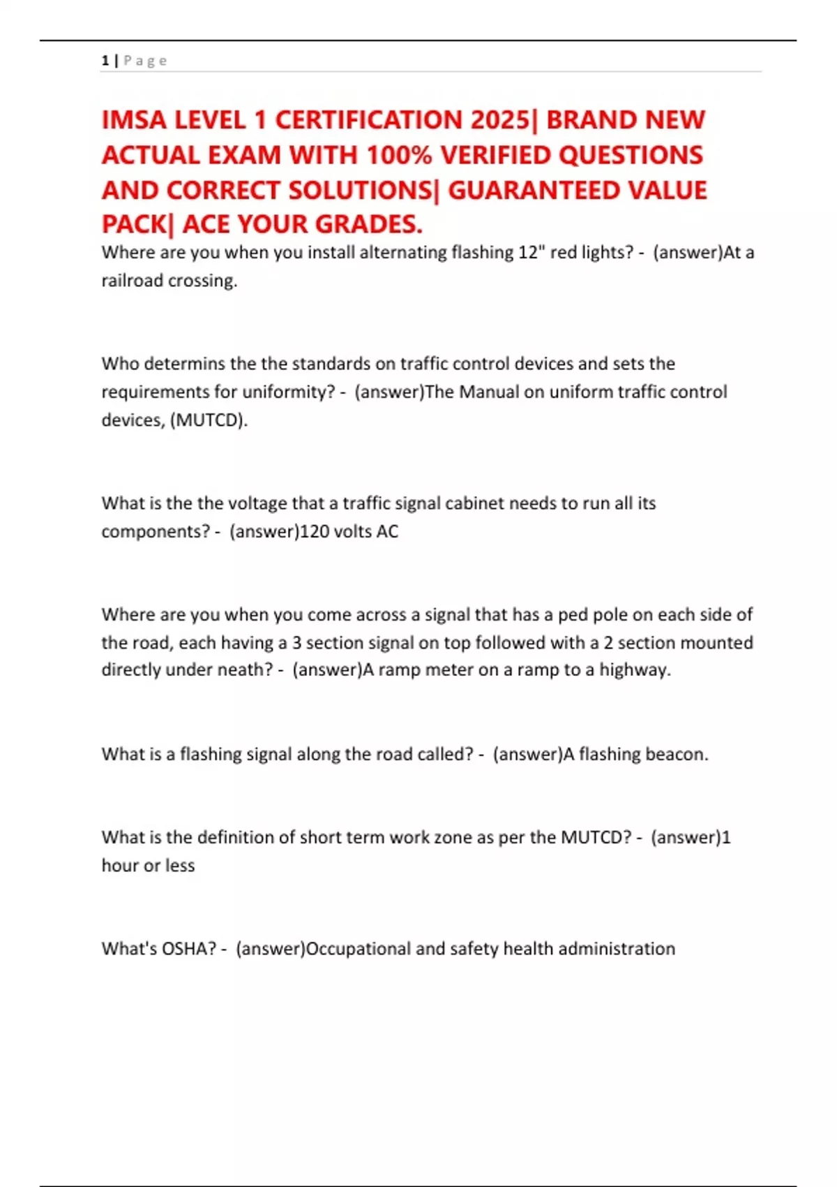 IMSA LEVEL 1 CERTIFICATION 2025| BRAND NEW ACTUAL EXAM WITH 100% VERIFIED QUESTIONS AND CORRECT SOLUTIONS| GUARANTEED VALUE PACK| ACE YOUR GRADES.
