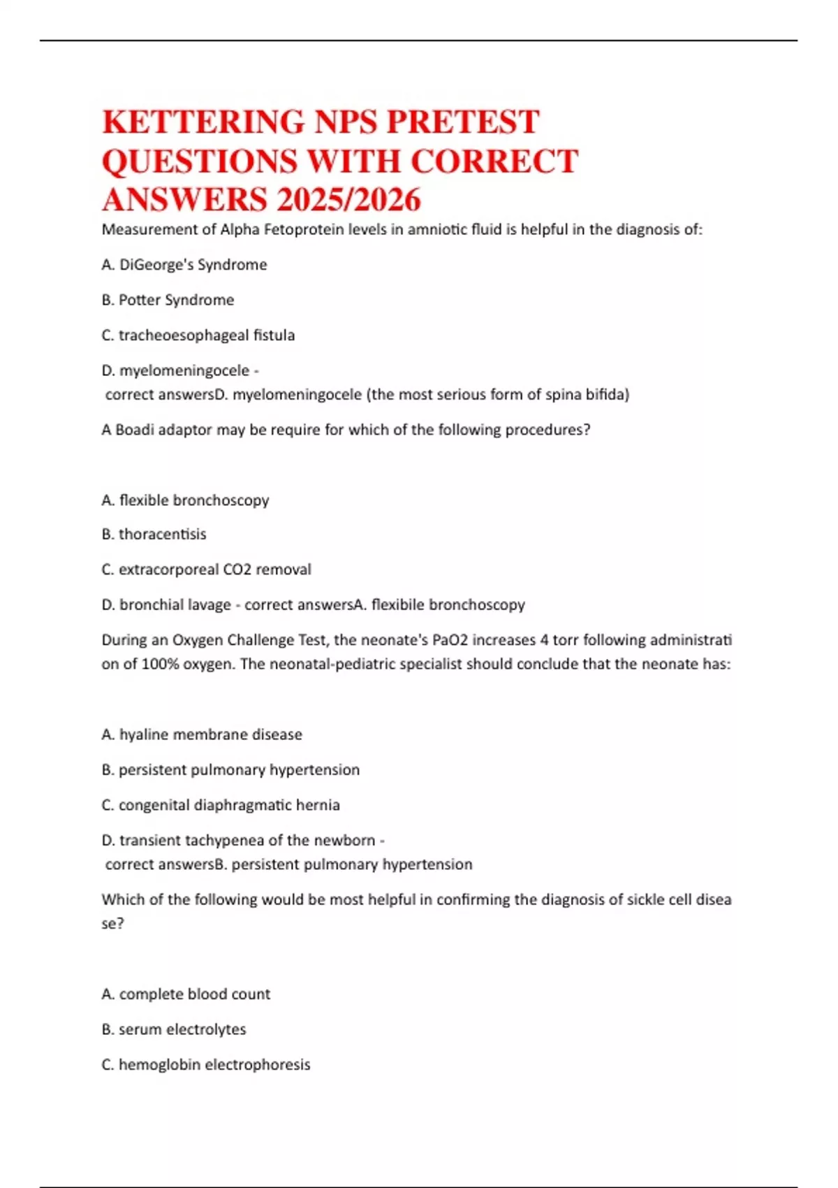 , D.AsweatAchlorideAtestA-AcorrectAanswersC.AhemoglobinAelectrophoresis