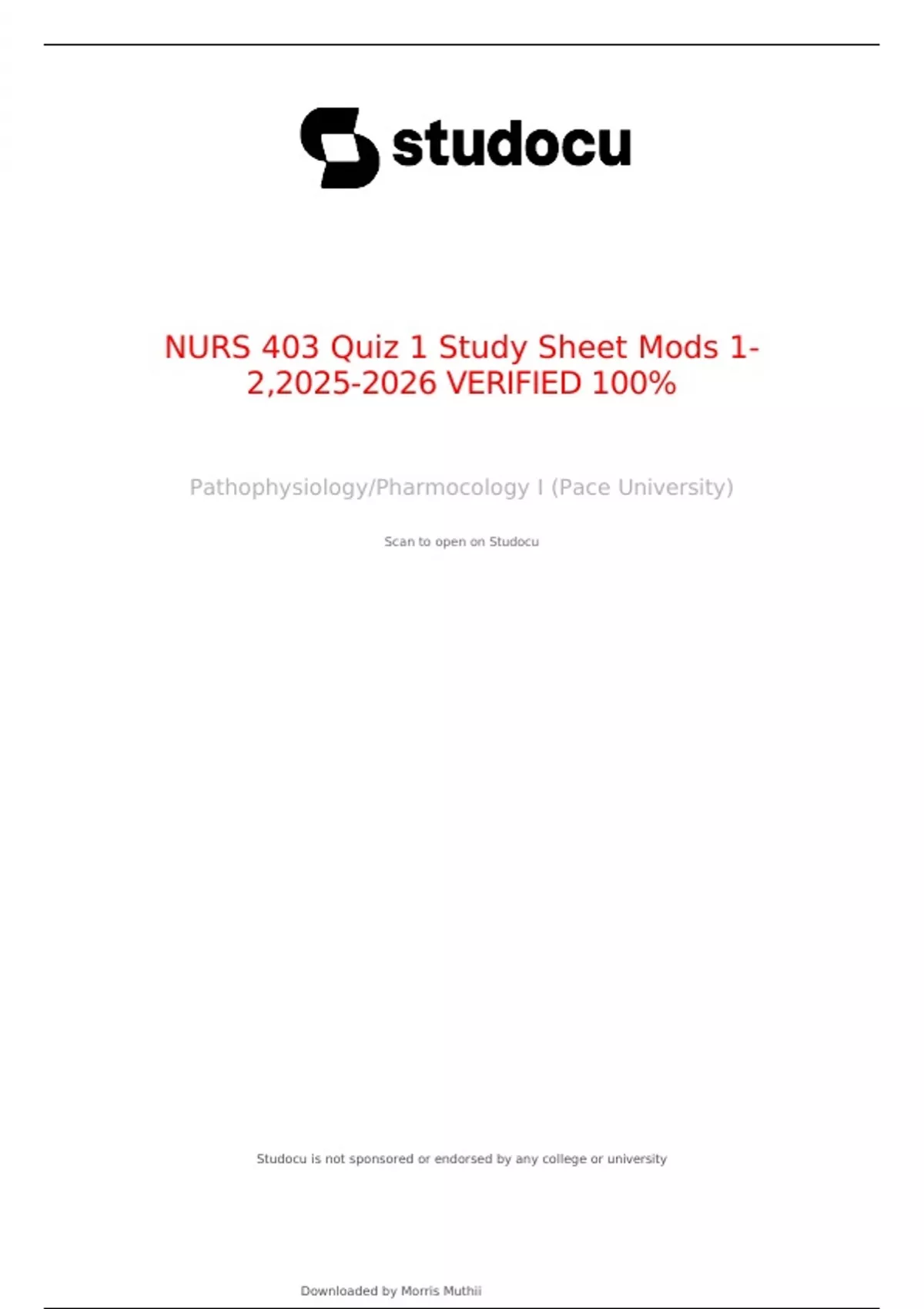 Summary NURS 403 Quiz 1 Study Sheet Mods 1-2, VERIFIED 100%,