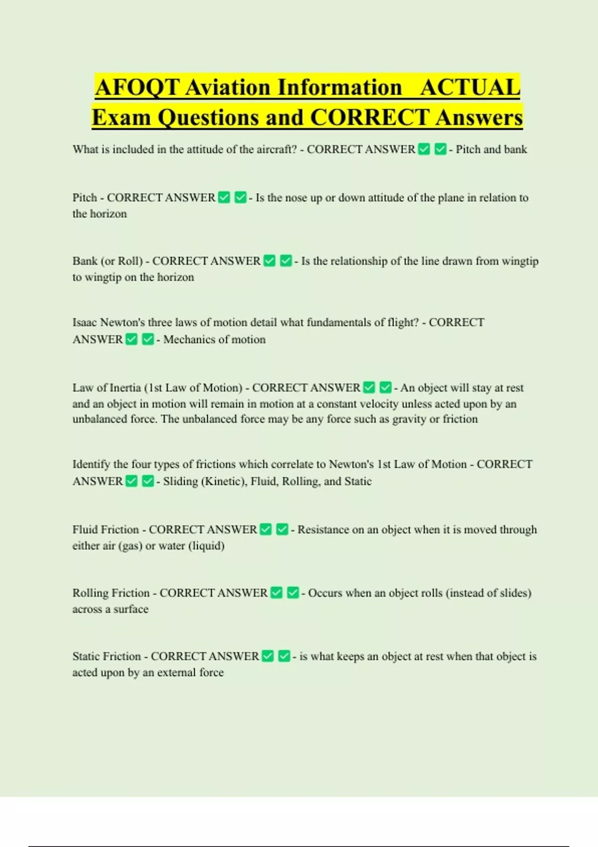 Identify the four types of frictions which correlate to Newton's 1st Law of Motion - CORRECT