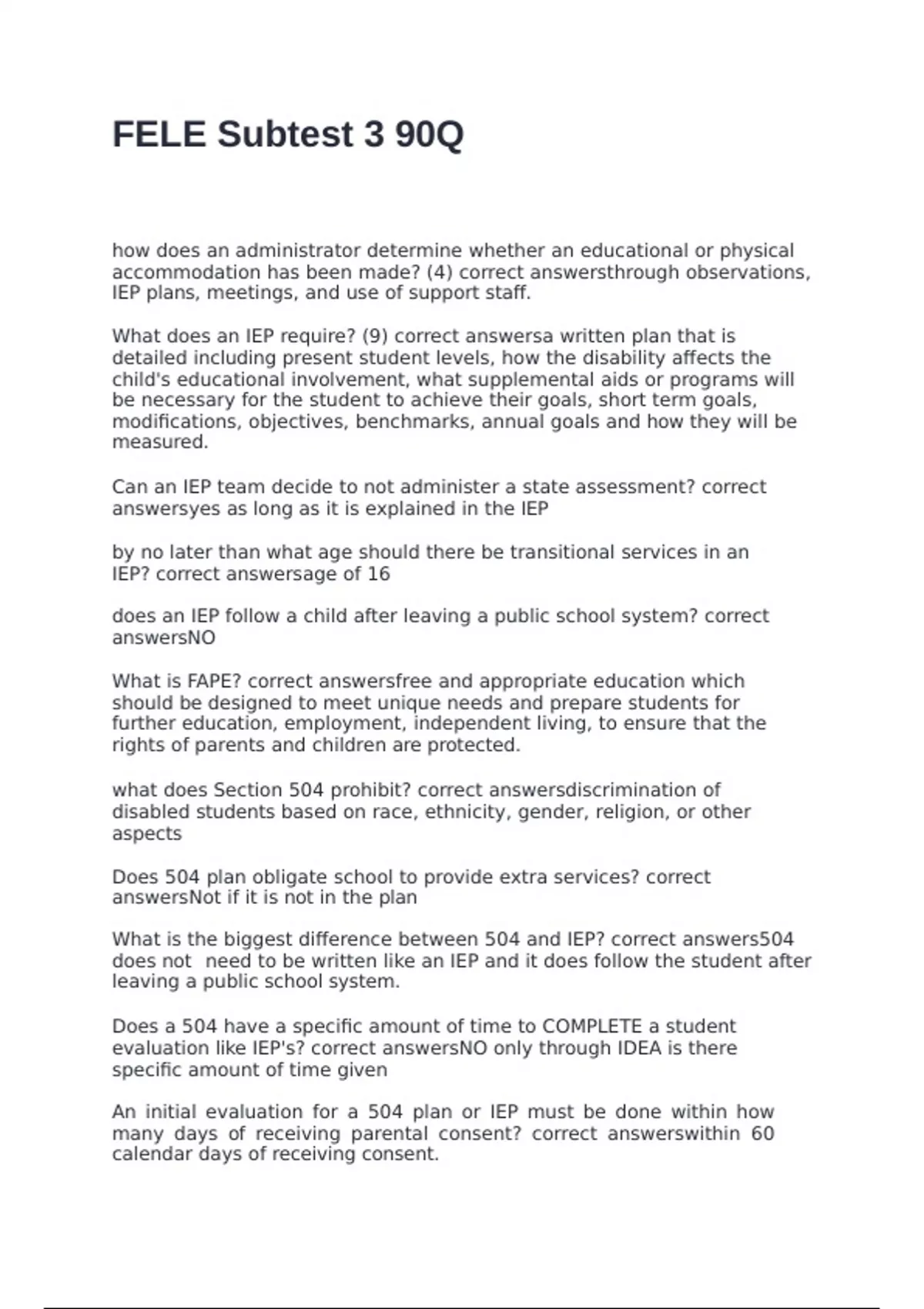 IEP? correct answersage of 16