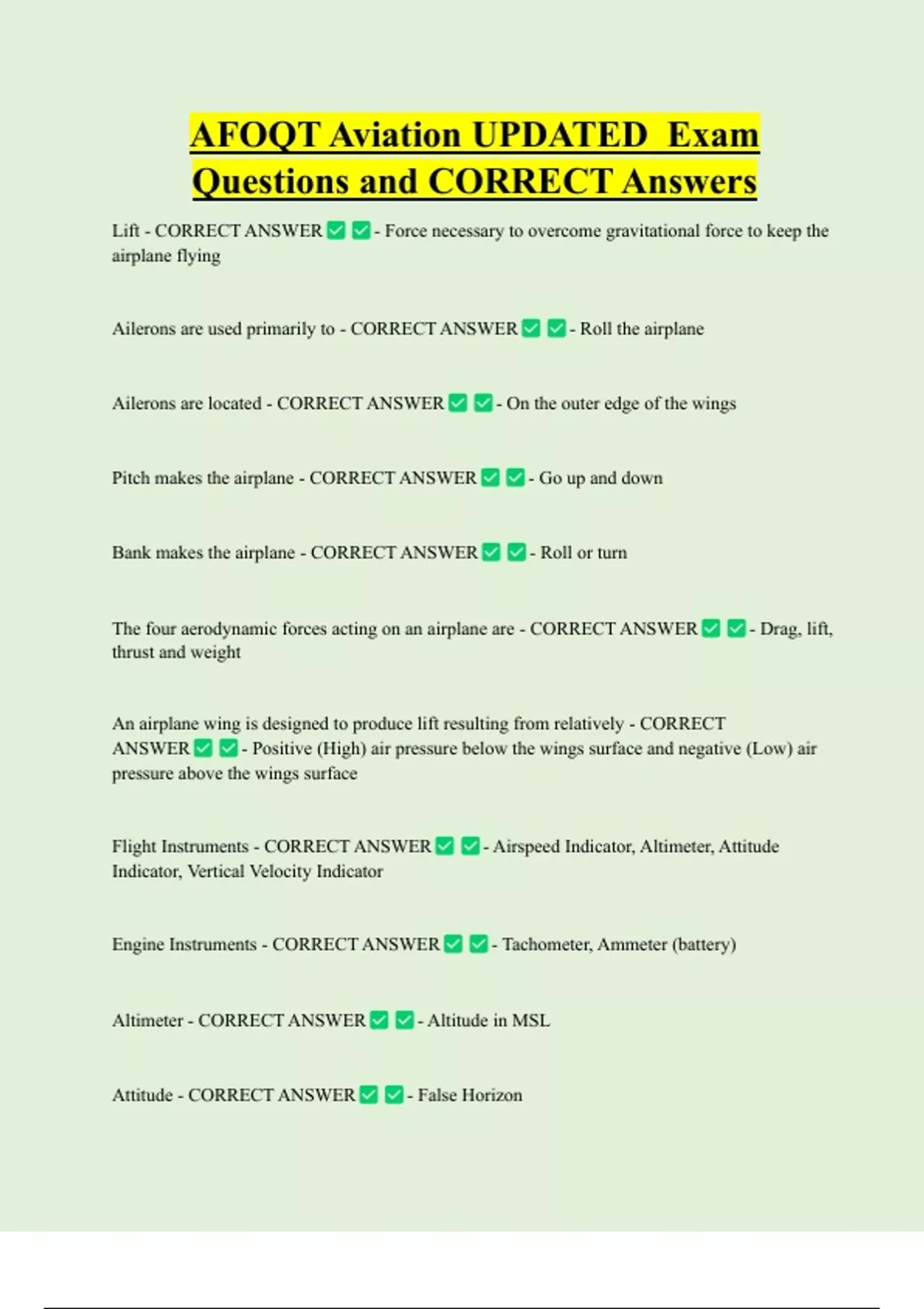 Questions and CORRECT Answers