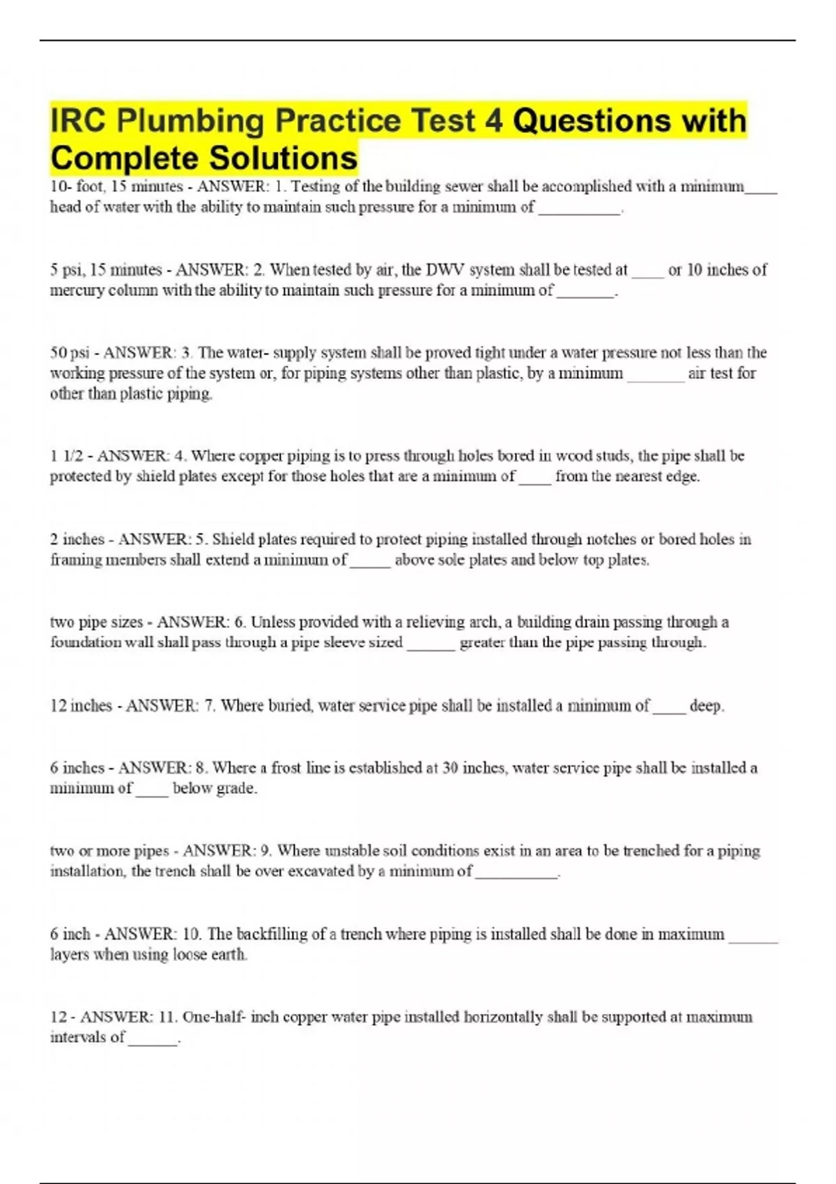 IRC Plumbing Practice Test 4 Questions with Complete Solutions