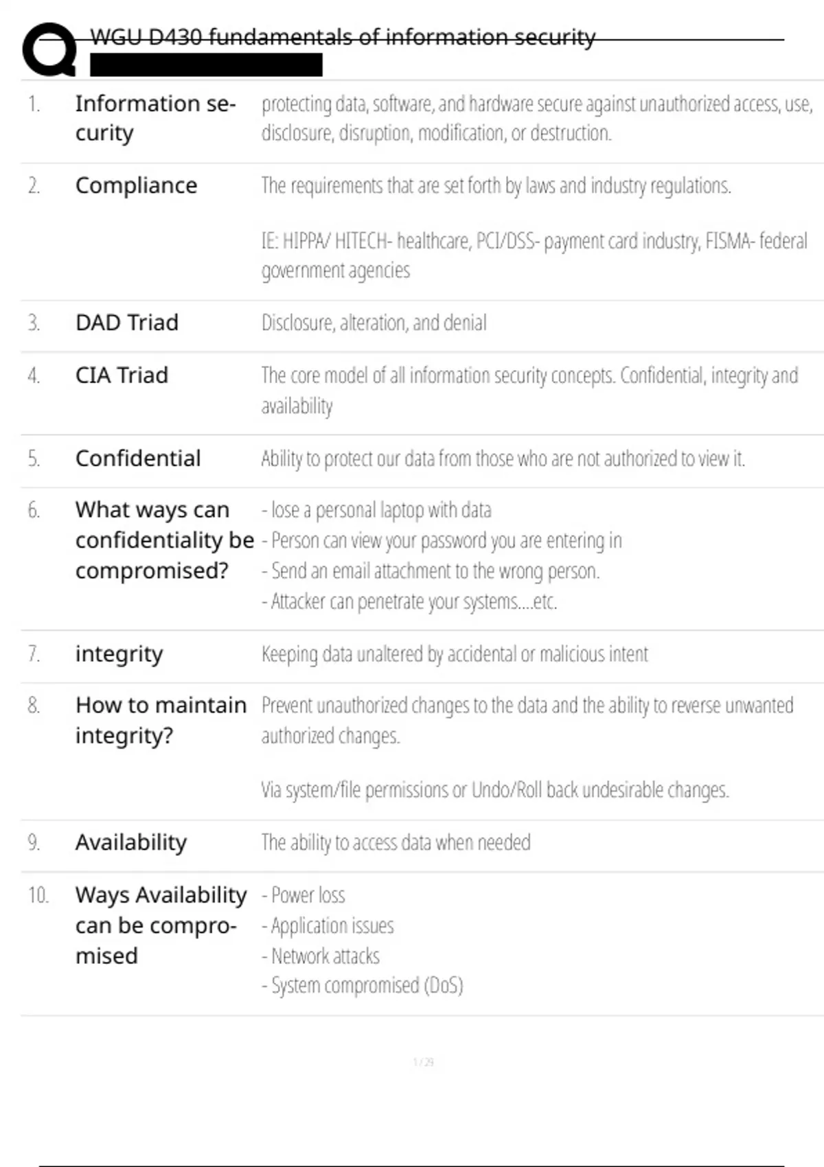 1. Information se- protecting data, software, and hardware secure against unauthorized access, use,