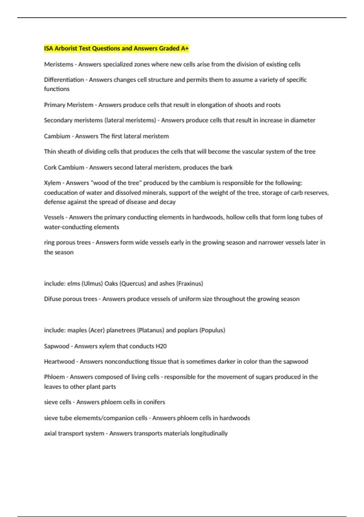 sieve tube elememts/companion cells - Answers phloem cells in hardwoods