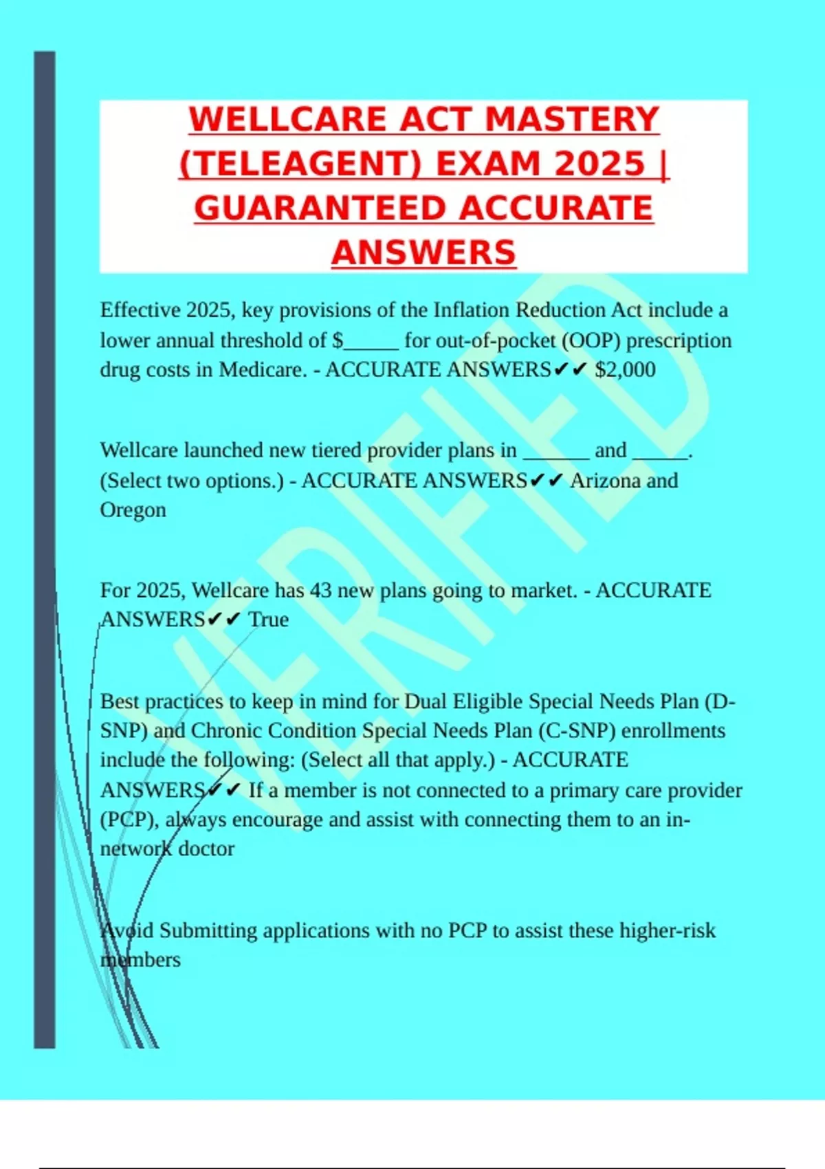 For 2025, Wellcare has 43 new plans going to market. - ACCURATE