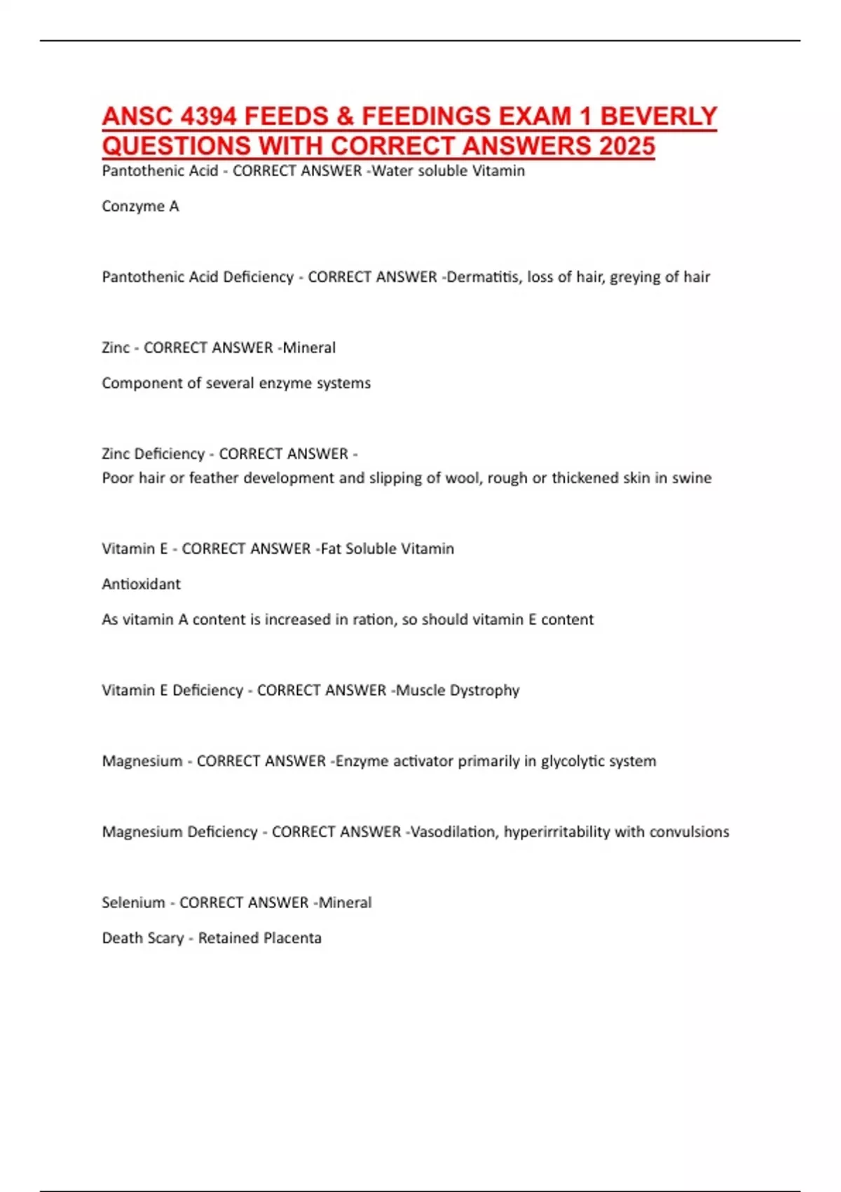 ANSC 4394 FEEDS & FEEDINGS EXAM 1 BEVERLY