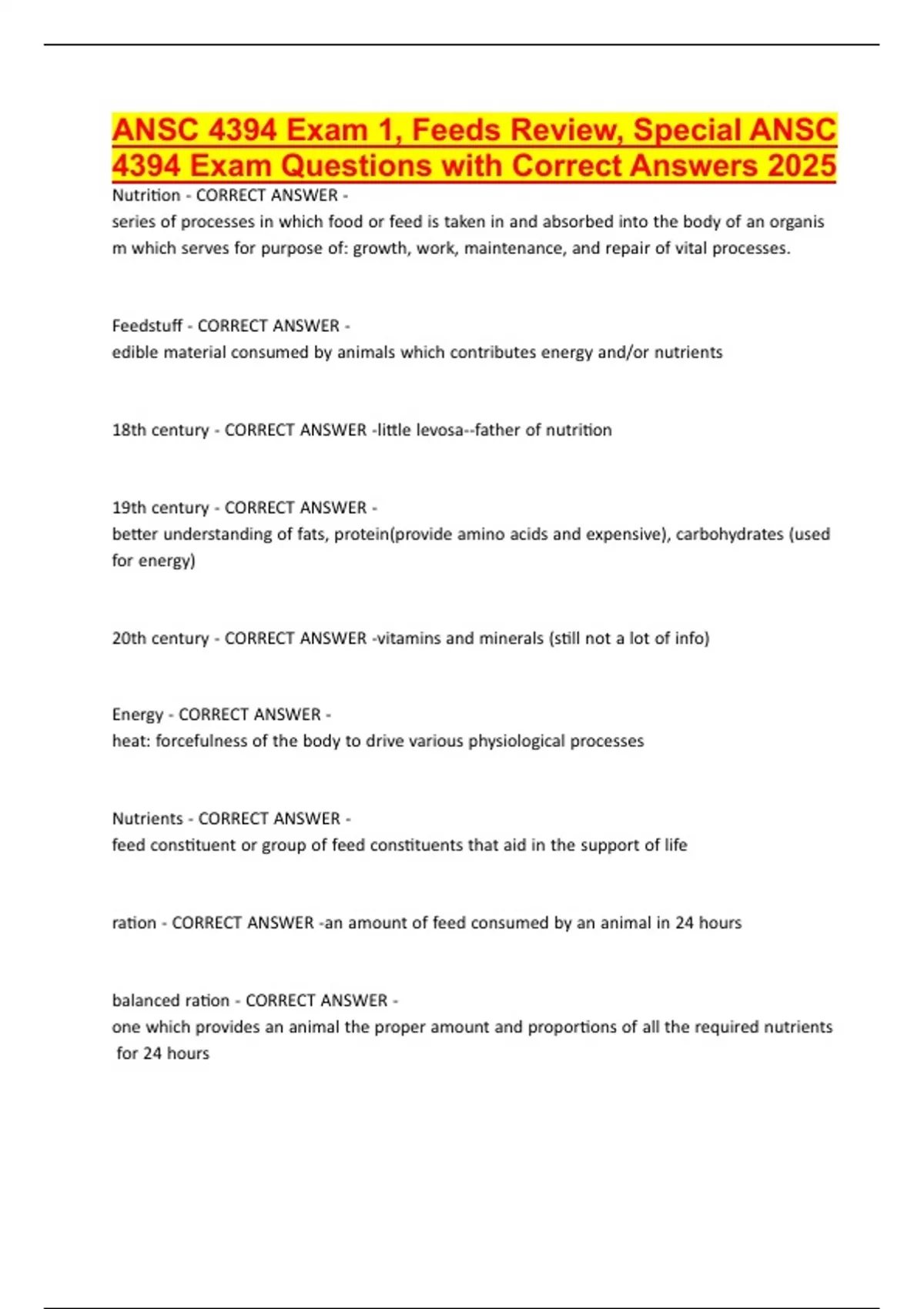 NutritionH-HCORRECTHANSWERH-
