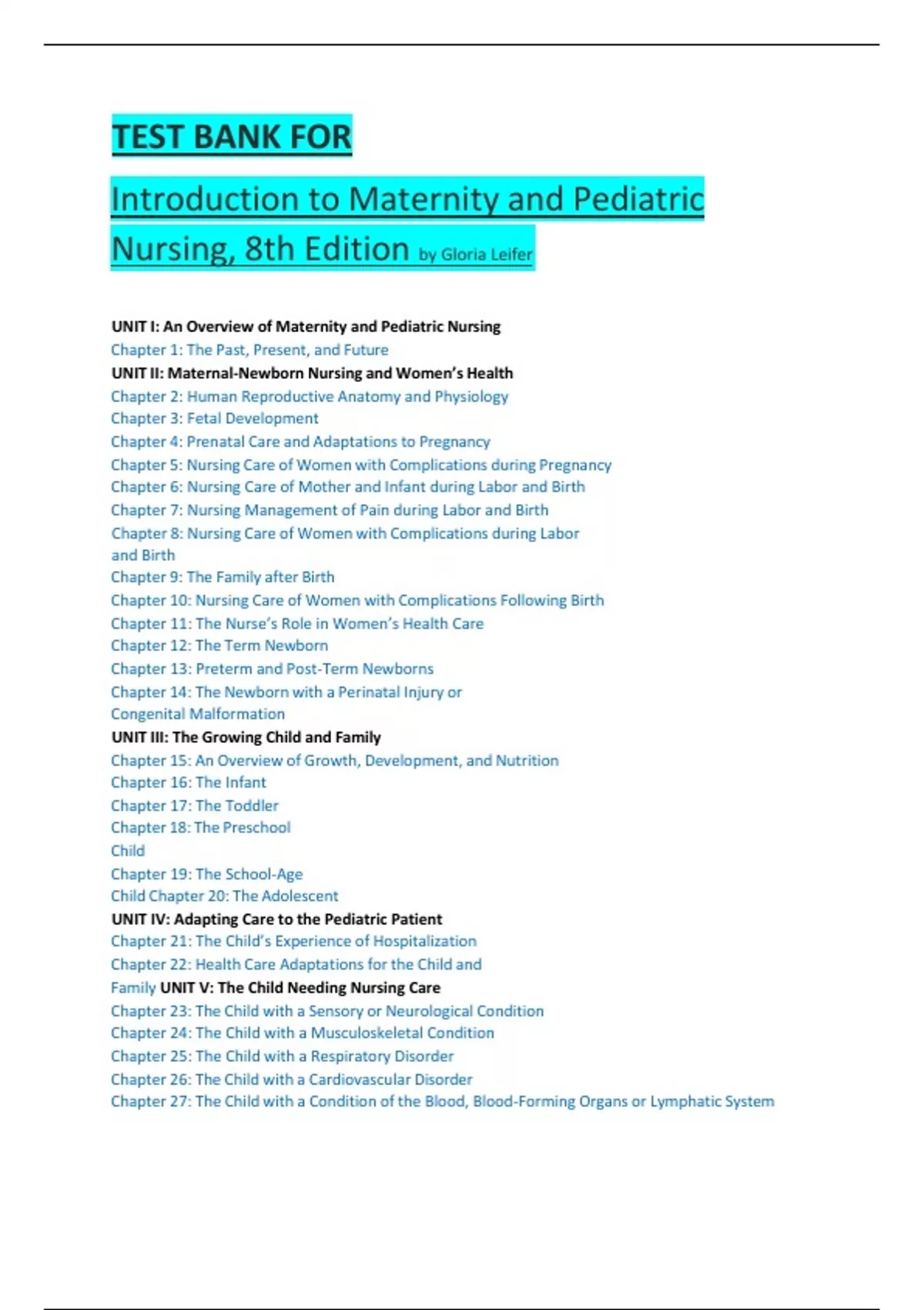 , INTRODUCTION TO MATERNITY AND PEDIATRIC NURSING 8TH EDITION LEIFER TEST BANK 3