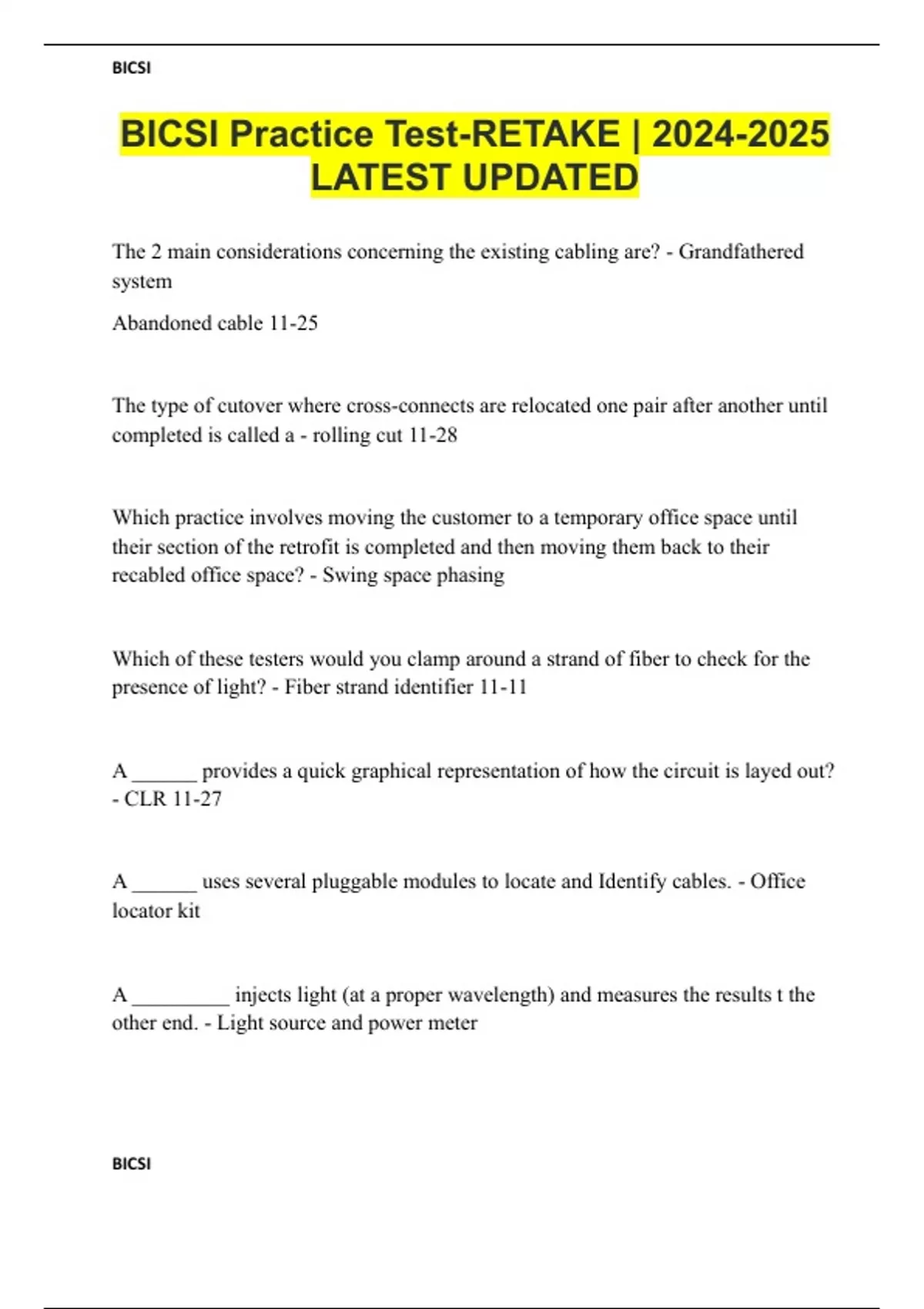 BICSI Practice Test-RETAKE | LATEST UPDATED