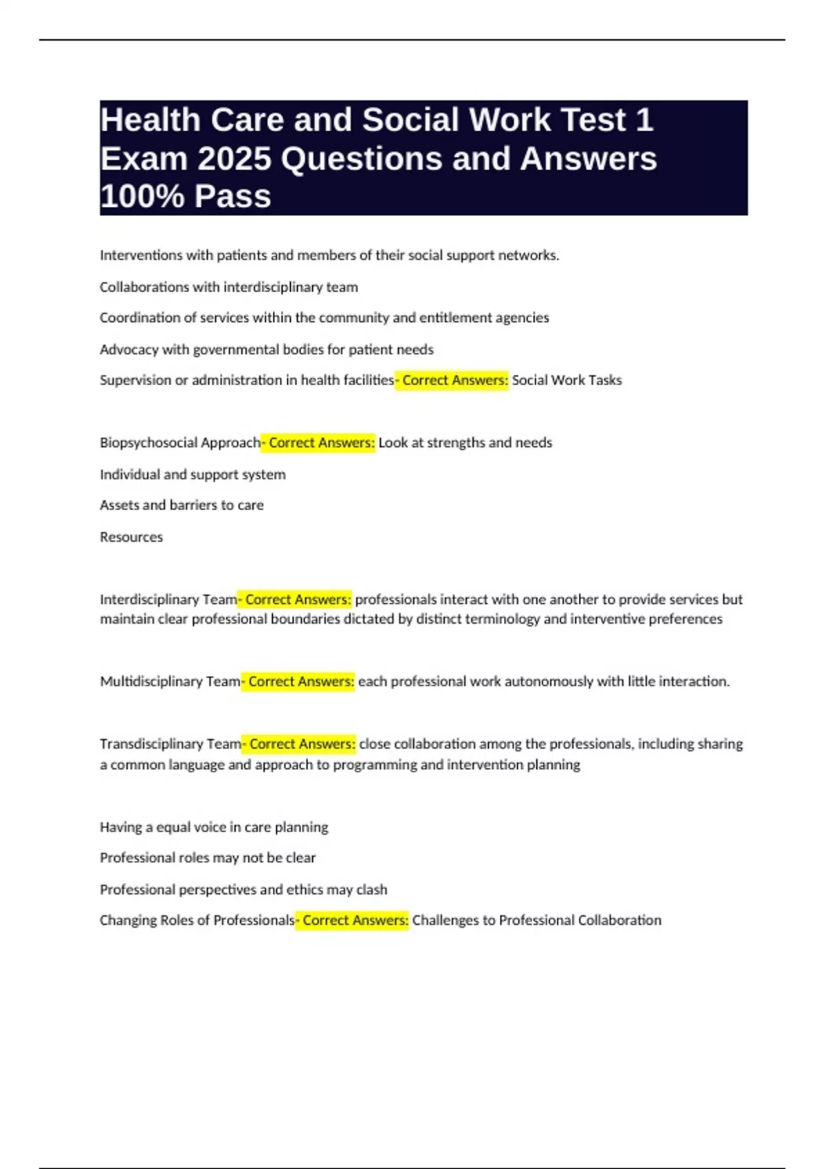 Interdisciplinary Team- Correct Answers: professionals interact with one another to provide services but