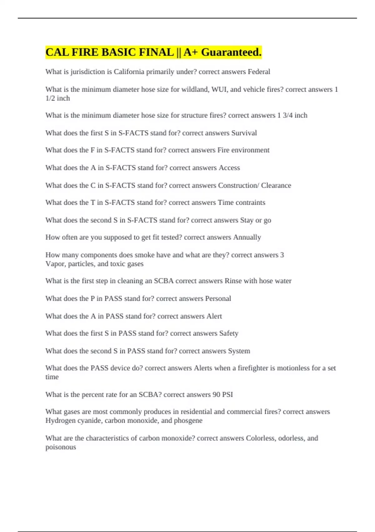 What does the F in S-FACTS stand for? correct answers Fire environment