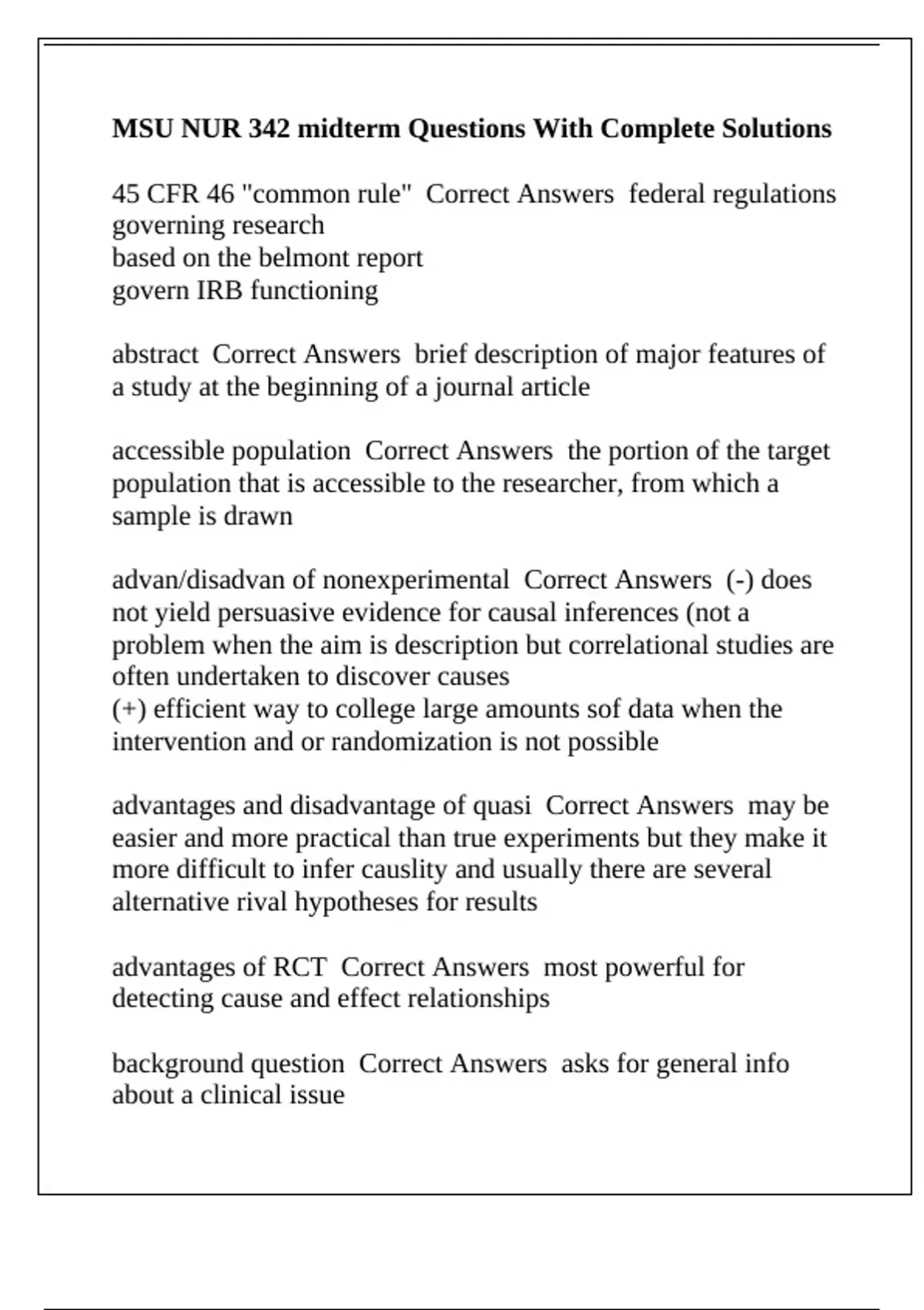 case study Correct Answers non experimental, no comparison