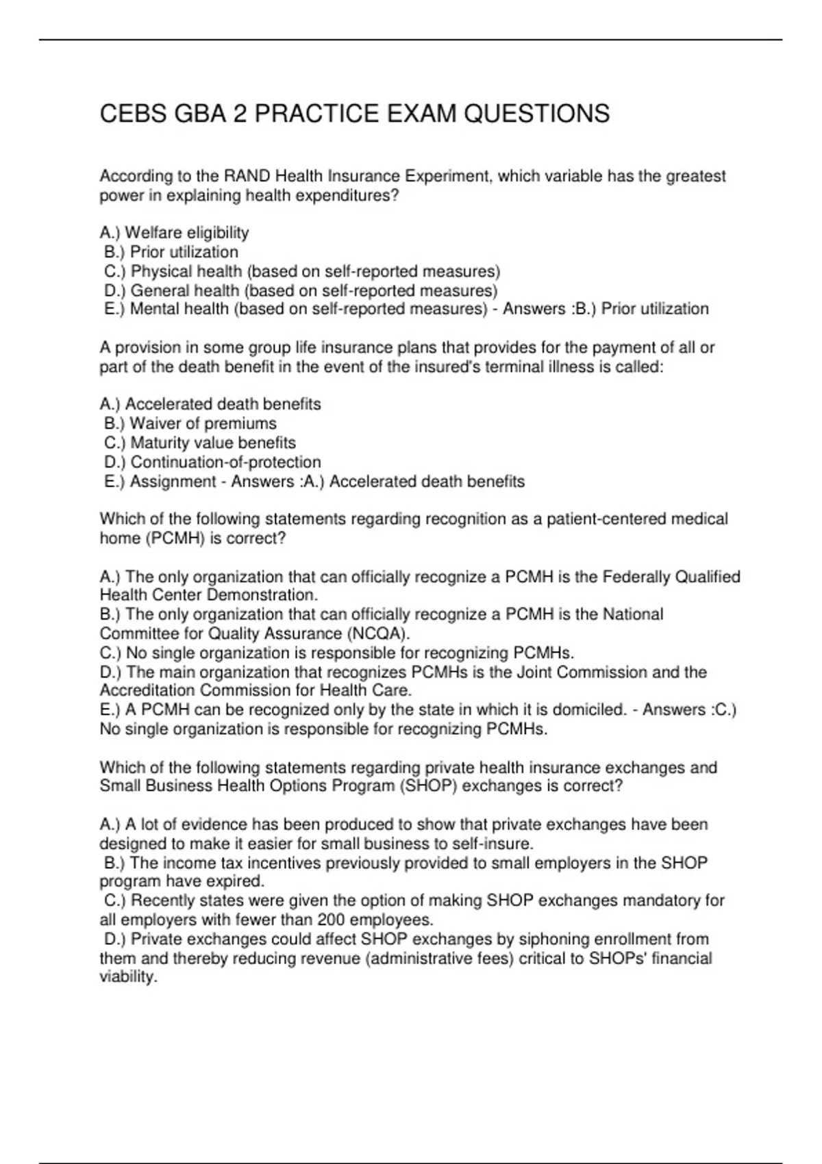 CEBS GBA 2 PRACTICE EXAM QUESTIONS