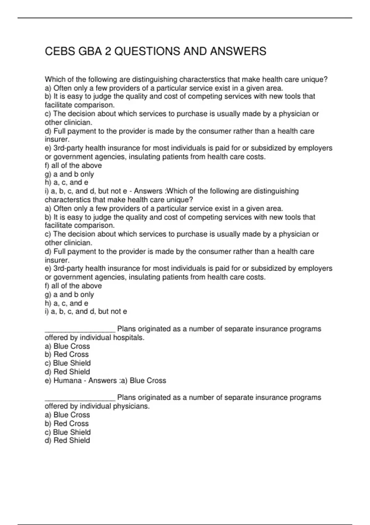 CEBS GBA 2 QUESTIONS AND ANSWERS