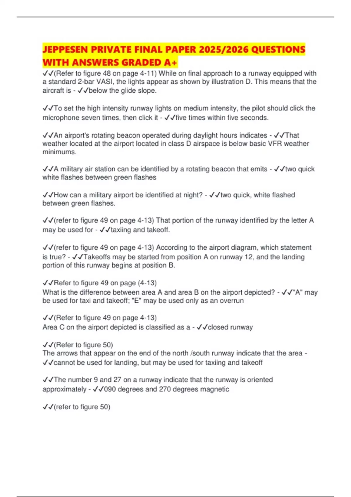 JEPPESEN PRIVATE FINAL PAPER 2025/2026 QUESTIONS WITH ANSWERS GRADED A+