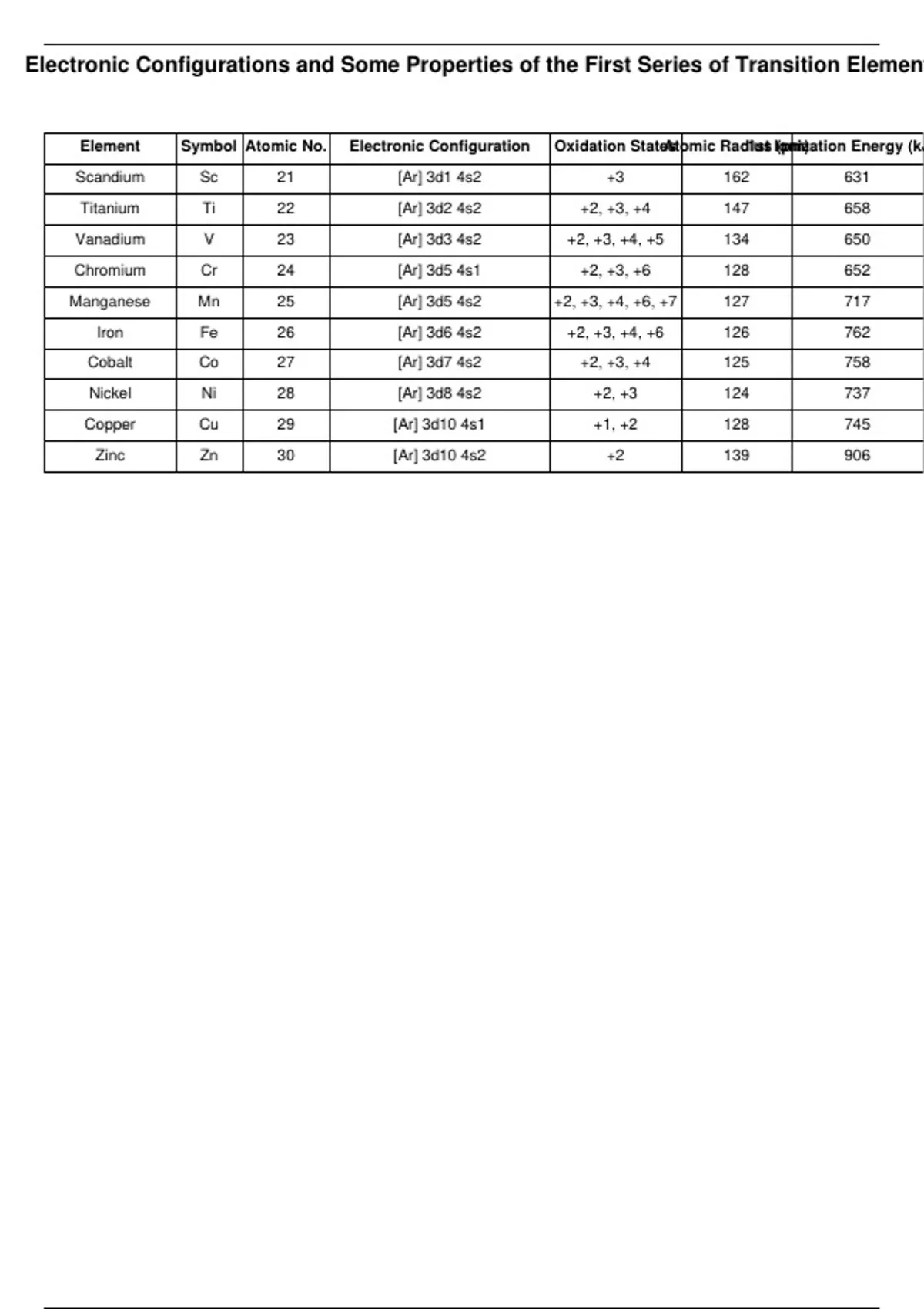 Element Symbol Atomic No. Electronic Configuration Oxidation States