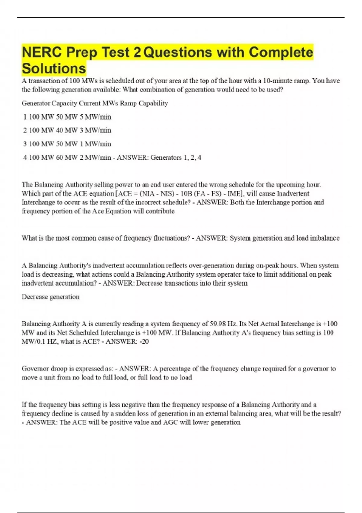 NERC Prep Test 2 Questions with Complete Solutions