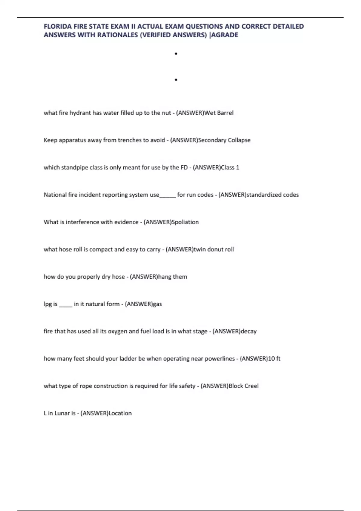 , FLORIDA FIRE STATE EXAM II ACTUAL EXAM QUESTIONS AND CORRECT DETAILED