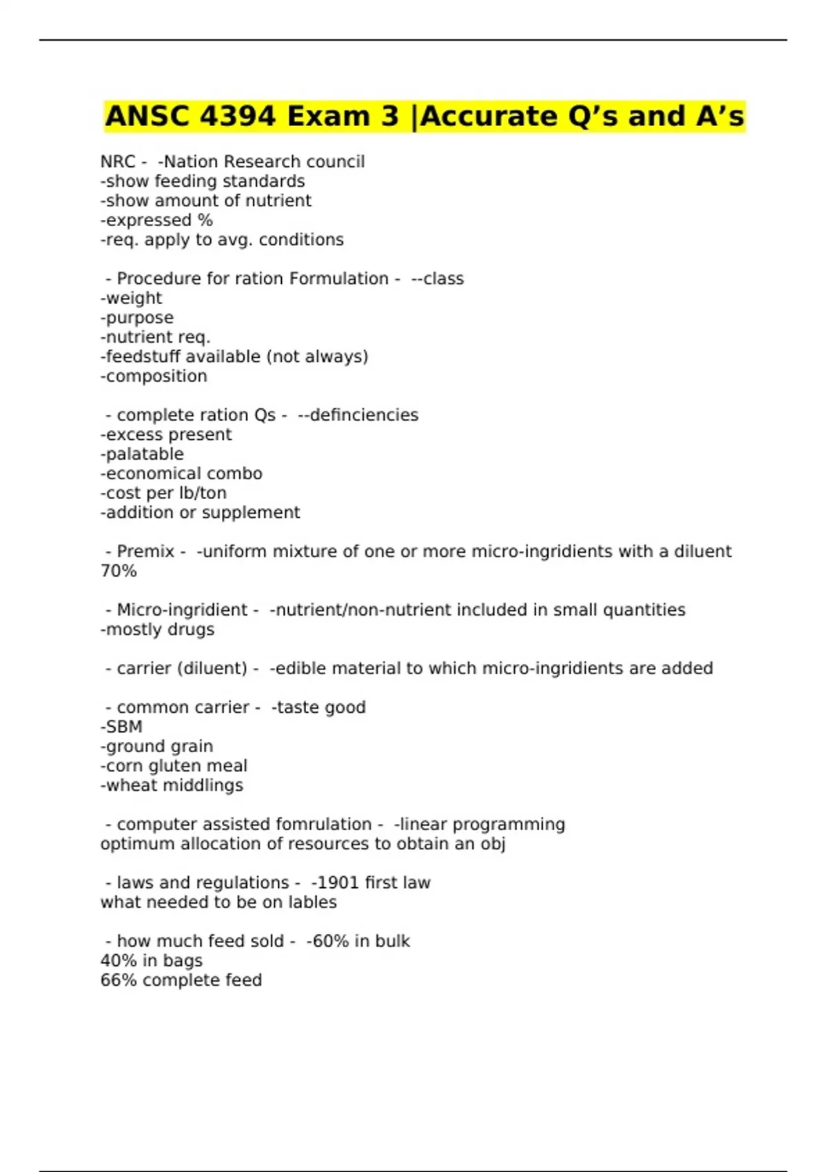 ANSC 4394 Exam 3 |Accurate Q’s and A’s