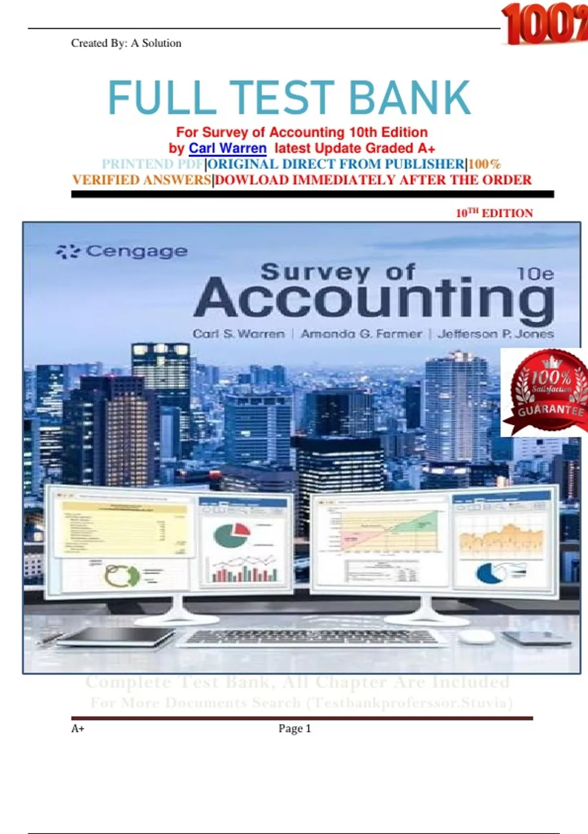 FULL TEST BANK For Survey of Accounting 10th Edition by Carl Warren latest Update Graded A+