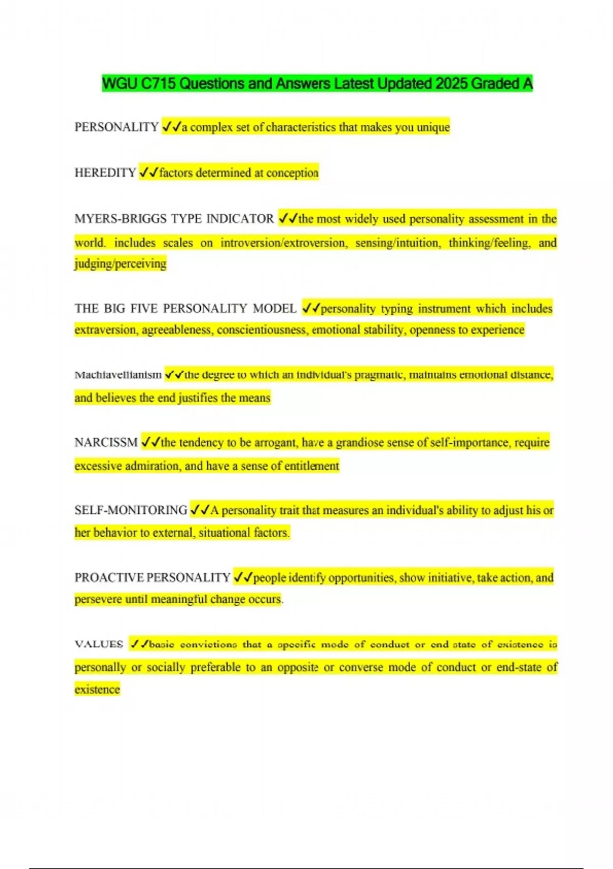 WGU C715 Questions and Answers Latest Updated 2025 Graded A