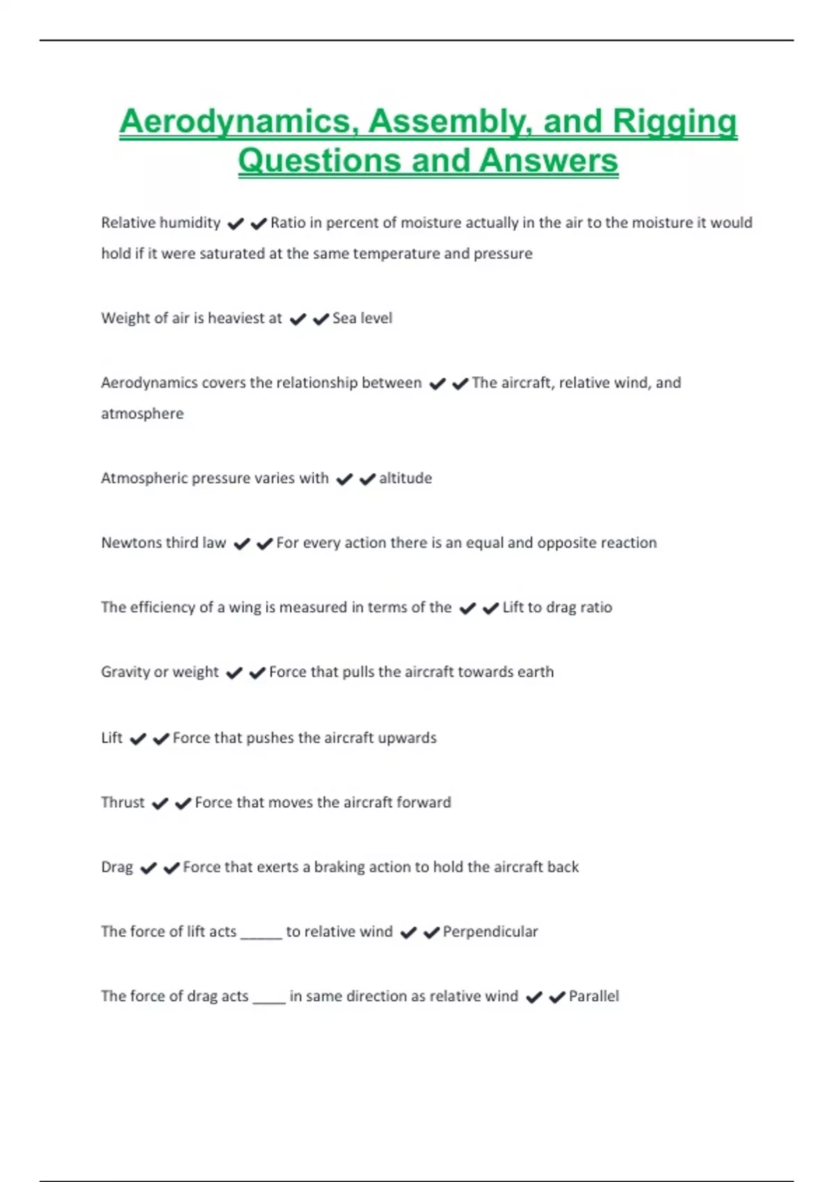 Aerodynamics, Assembly, and Rigging Questions and Answers