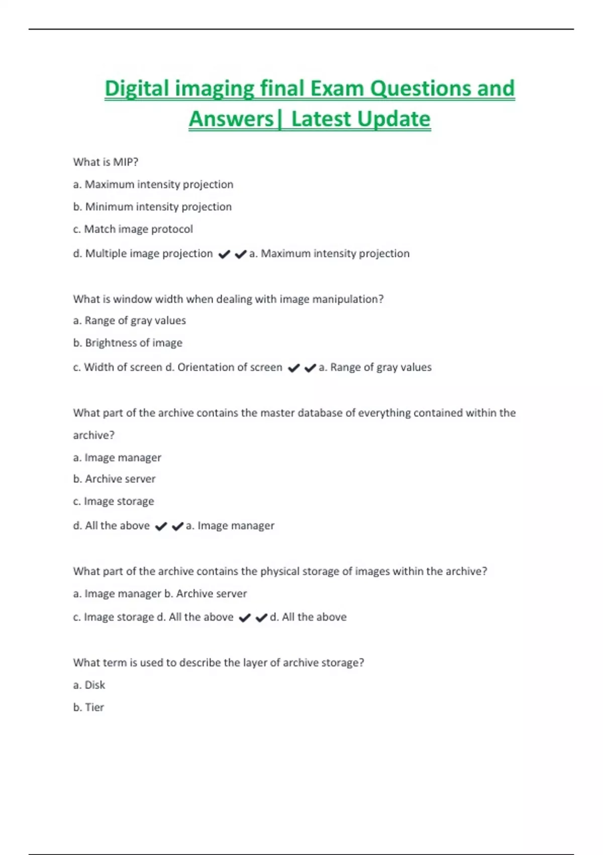 c. PACS administration d. Quality control administration ✔️✔️c. PACS administration