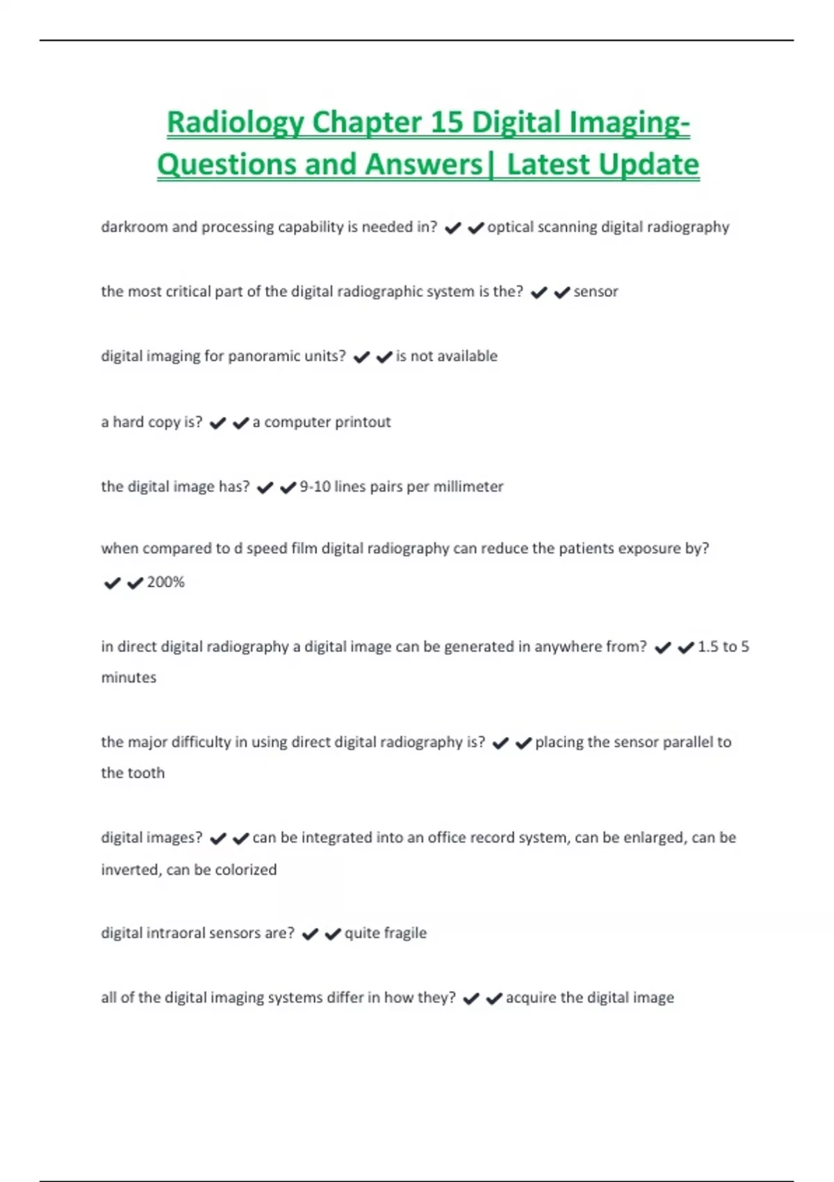 the most critical part of the digital radiographic system is the? ✔️✔️sensor