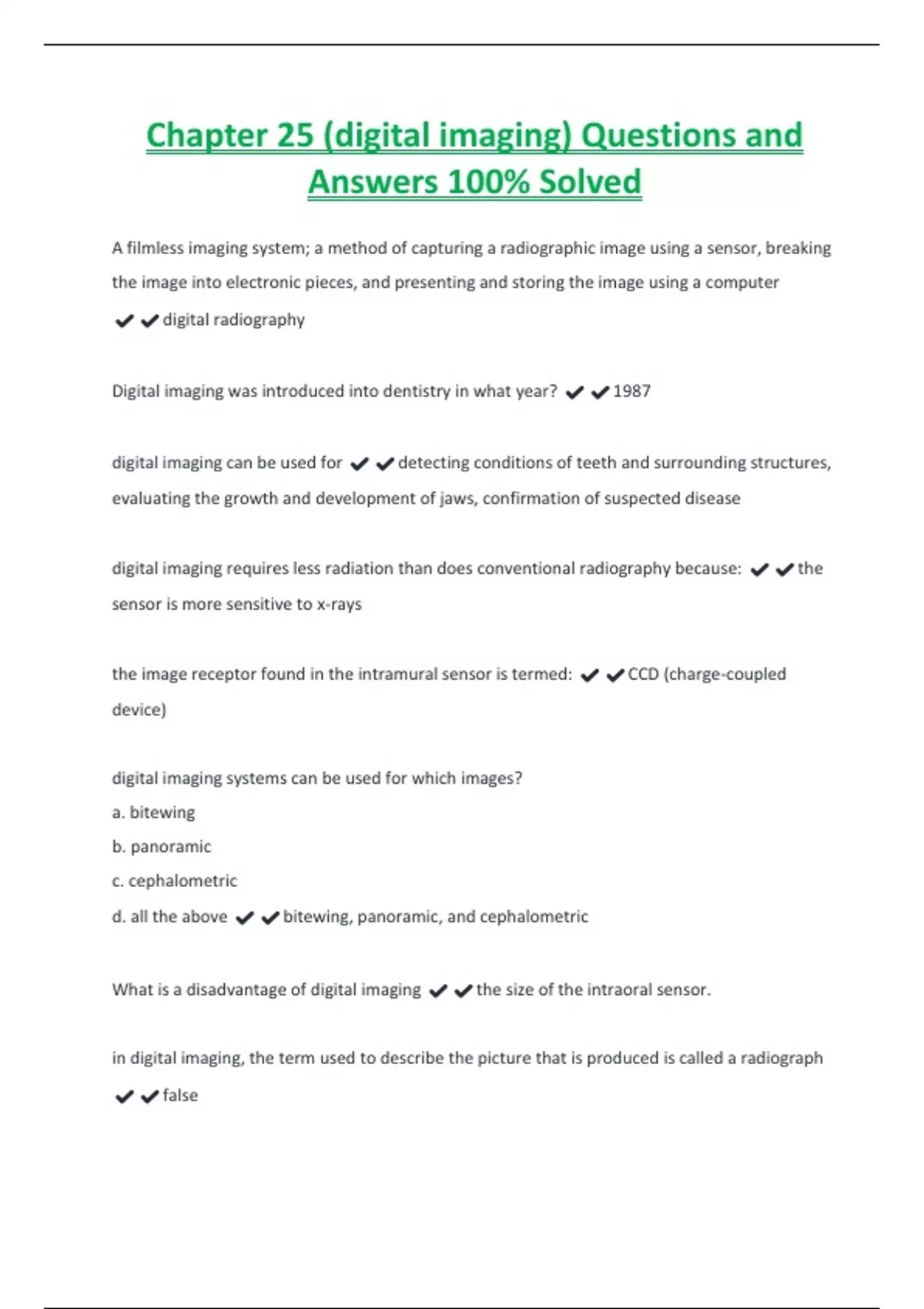 Chapter 25 (digital imaging) Questions and Answers 100% Solved