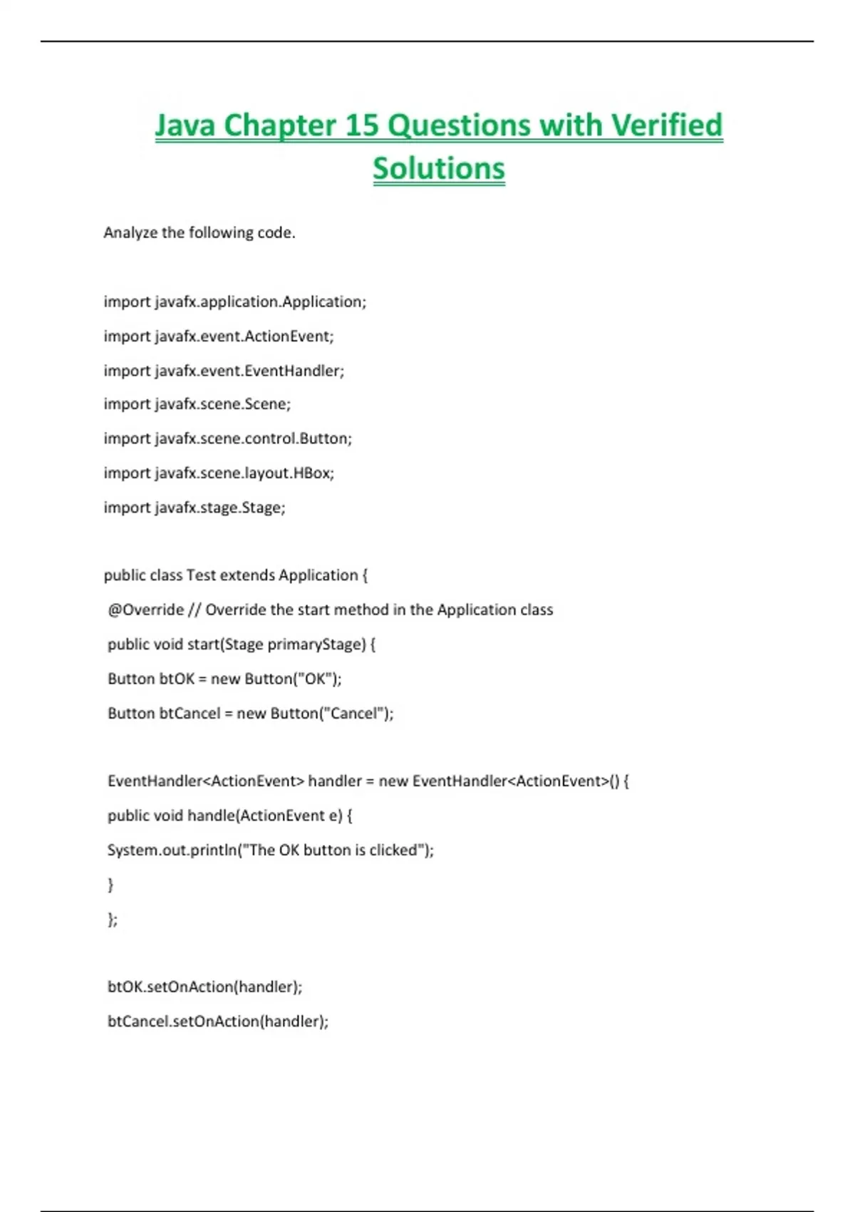 D. btOK.setOnAction(e -> {System.out.println("Handle the event");}); ✔️✔️A. btOK.setOnAction(e