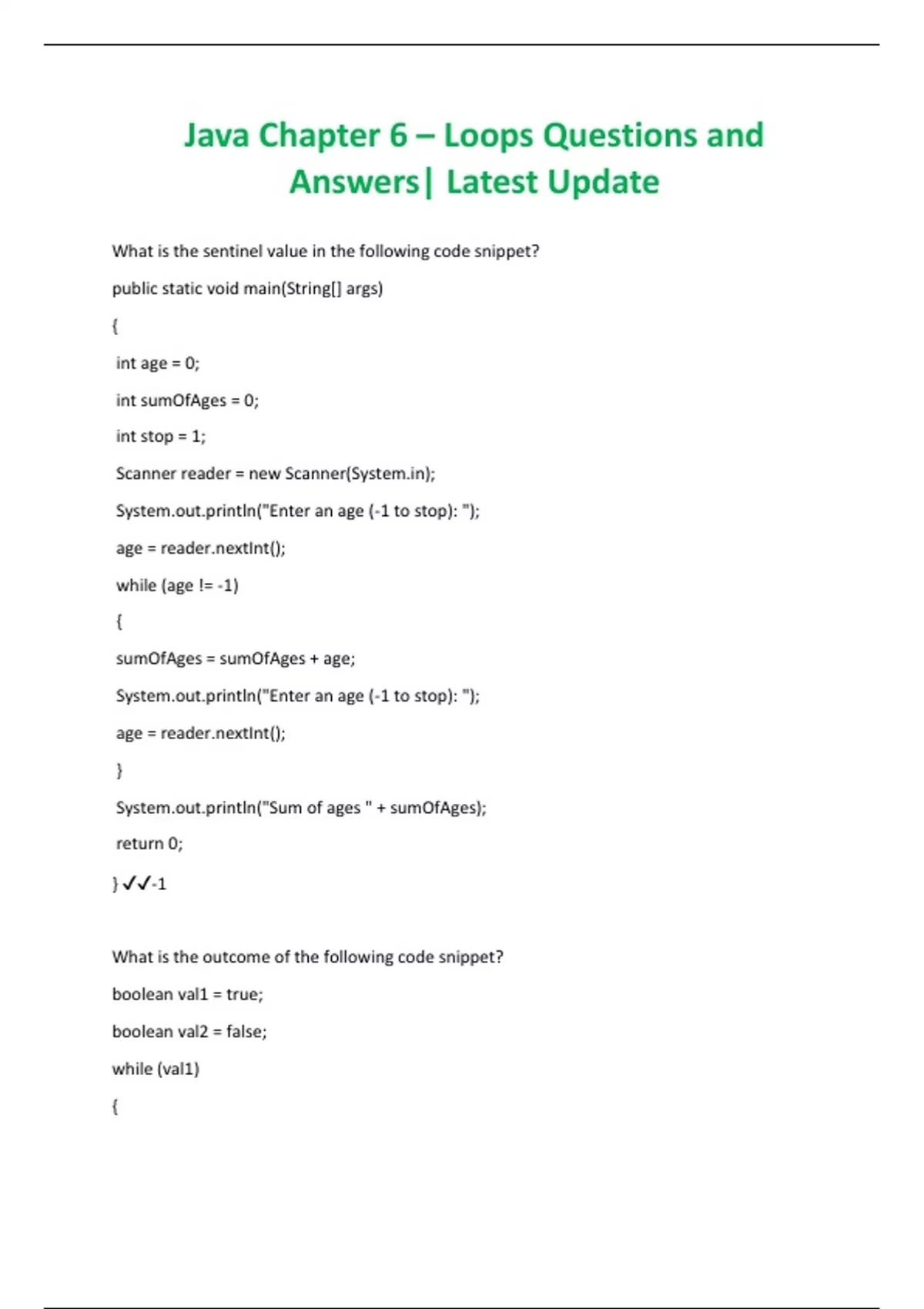 Java Chapter 6 – Loops Questions and