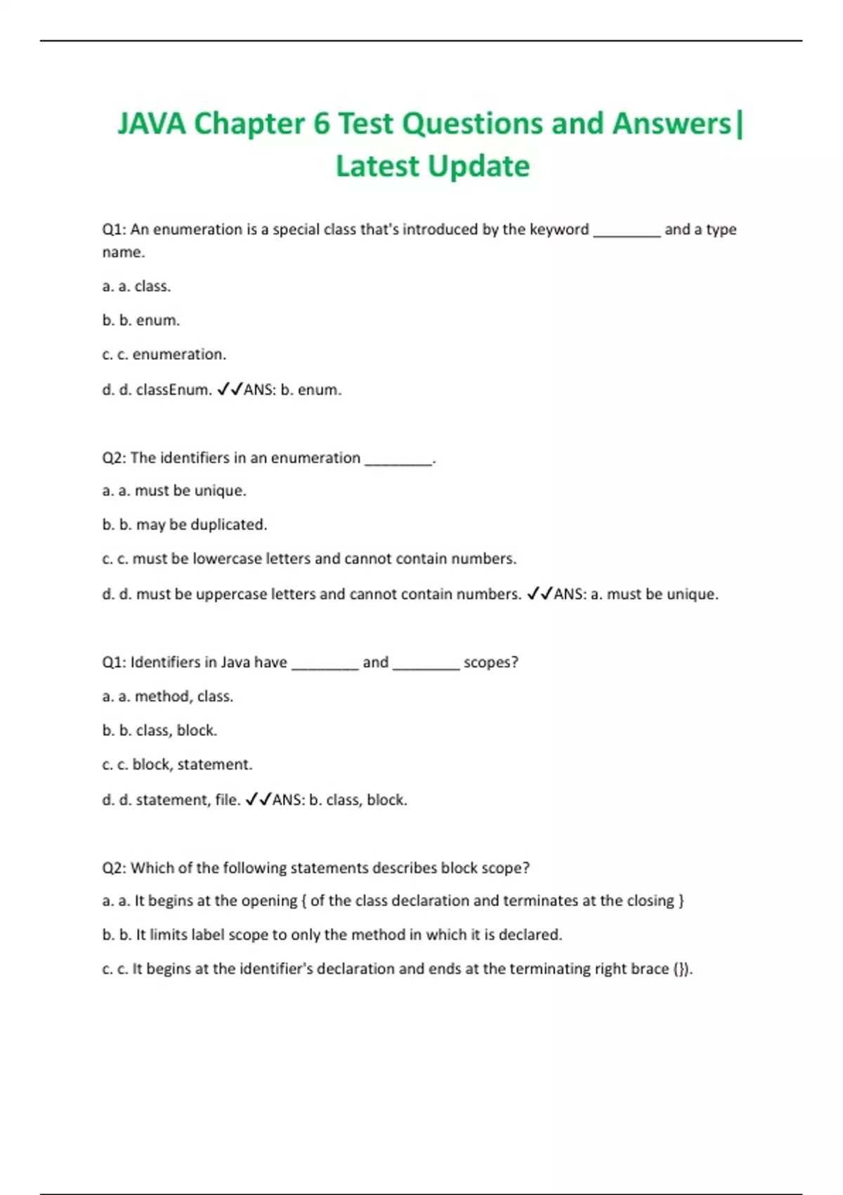 Q1: Identifiers in Java have ________ and ________ scopes?