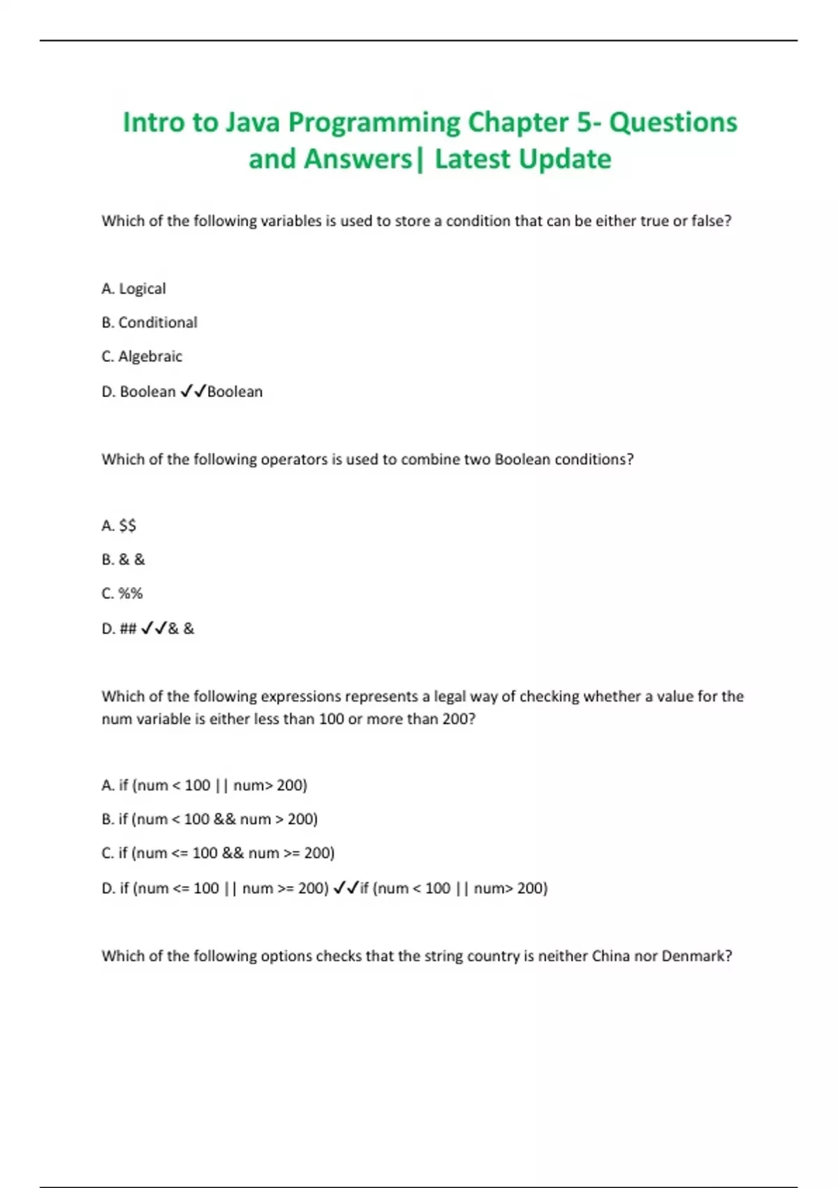 D. if (!(country.equals("China") && country.equals("Denmark"))) ✔️✔️if