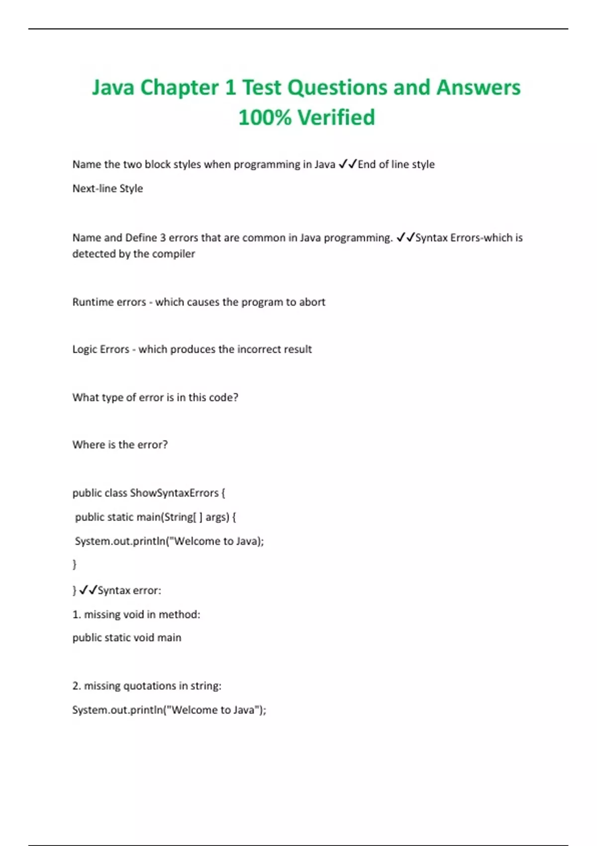 Name and Define 3 errors that are common in Java programming. ✔️✔️Syntax Errors-which is